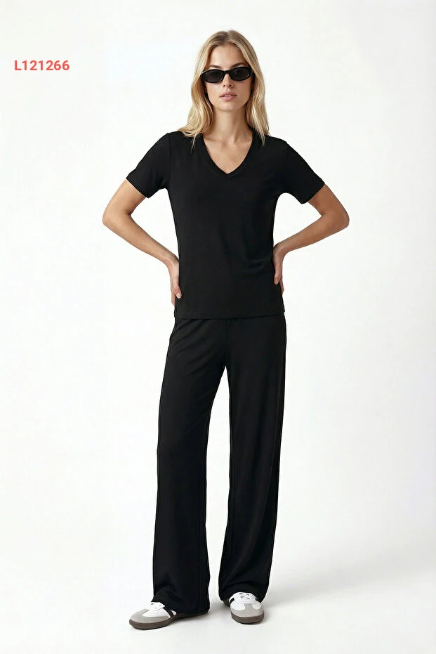 استمتع بالأناقة والراحة مع طقم الأزياء السوداء من Ritnice، المصنوع من قماش الإيلا مودال الفاخر والذي يمنحك لمسة ناعمة على البشرة. يأتي بتصميم عصري مع ياقة على شكل حرف V وحزام عند الخصر، بالإضافة إلى جيوب عملية تضفي لمسة من العفوية والراحة. ارتدي هذا الطقم في أي مناسبة لتشعري بالثقة والأناقة بلا حدود.