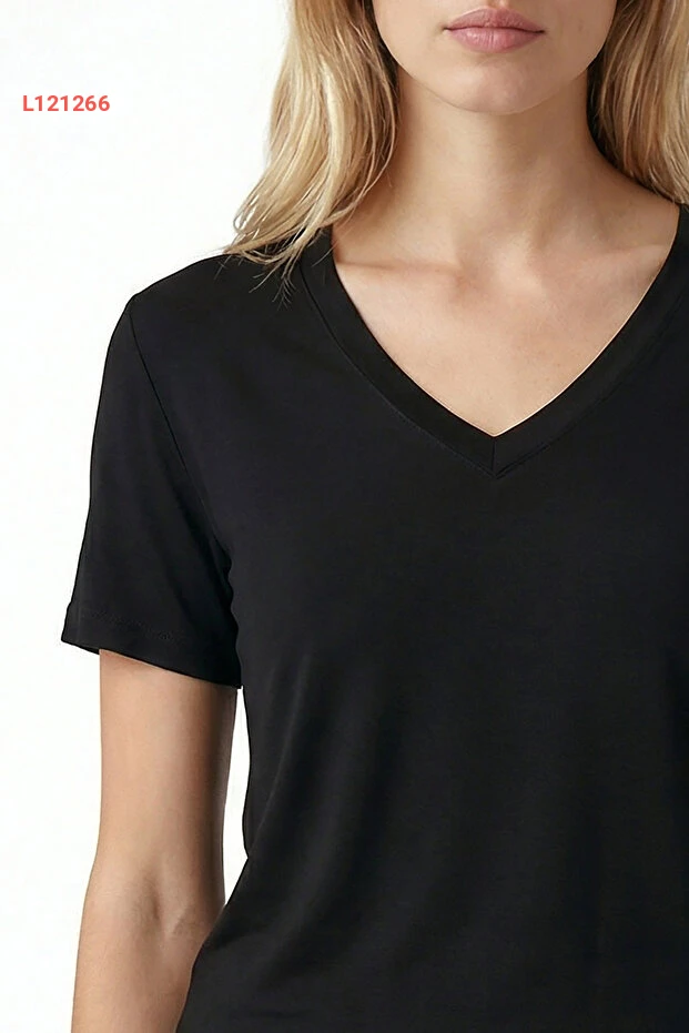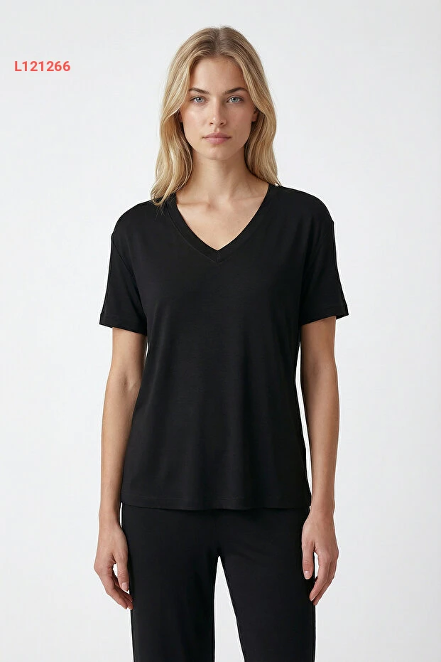 طقم نسائي أسود من مودال إيلية بمانشات ضيقة وياقة على شكل V مع جيوب