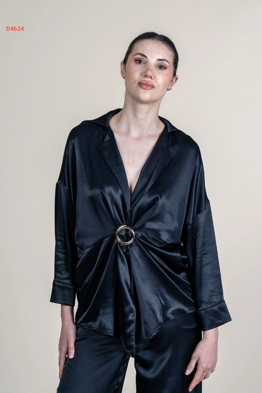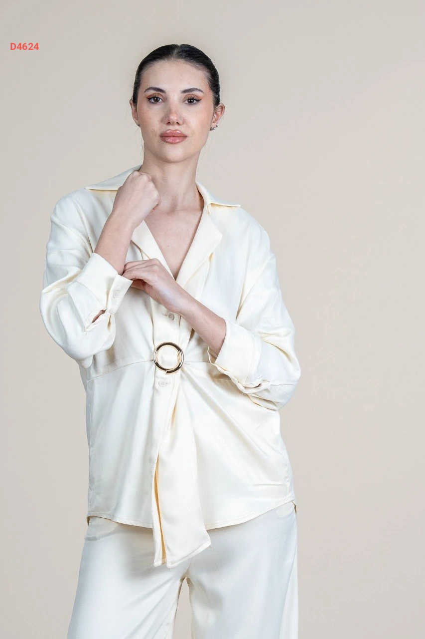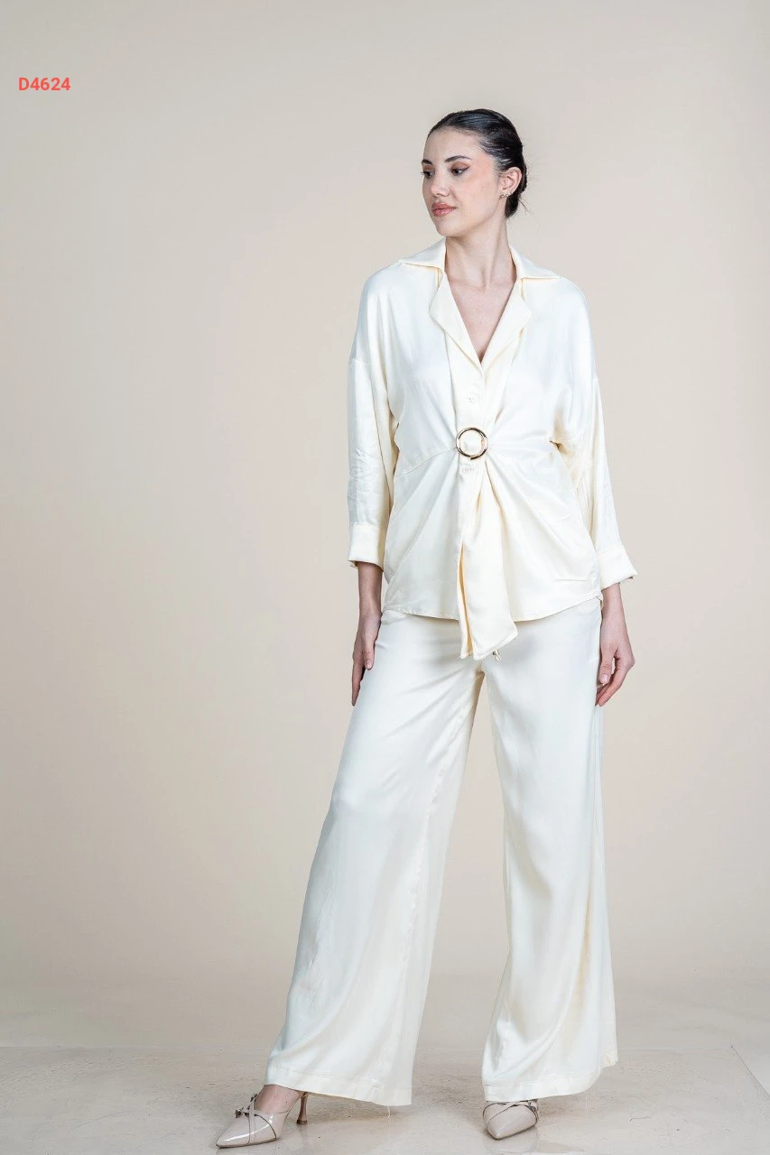 طقم بنطال ساتان وجاكيت بإبزيم