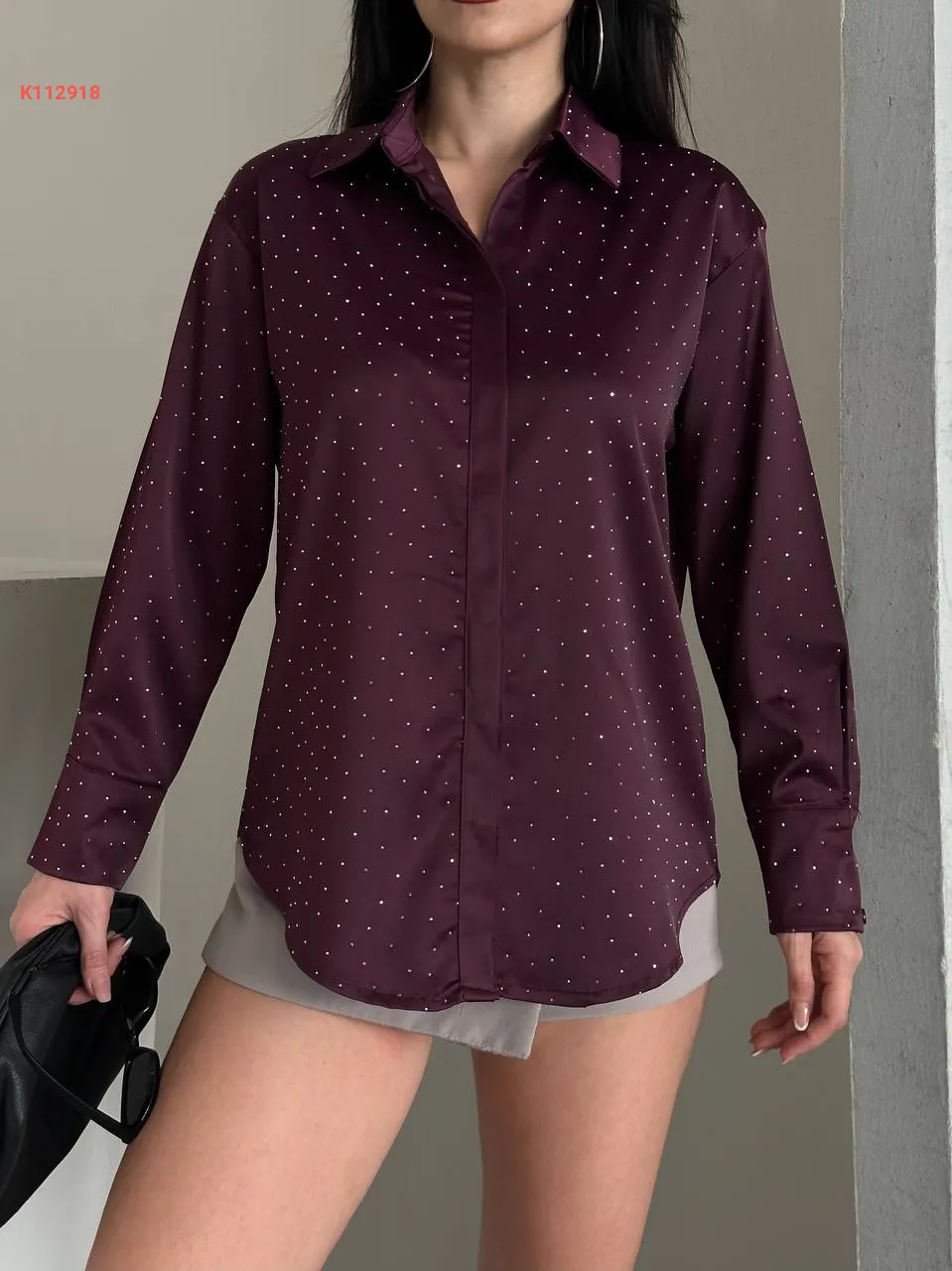 قميص ساتان بتفاصيل حجرية