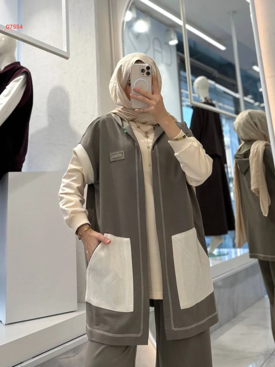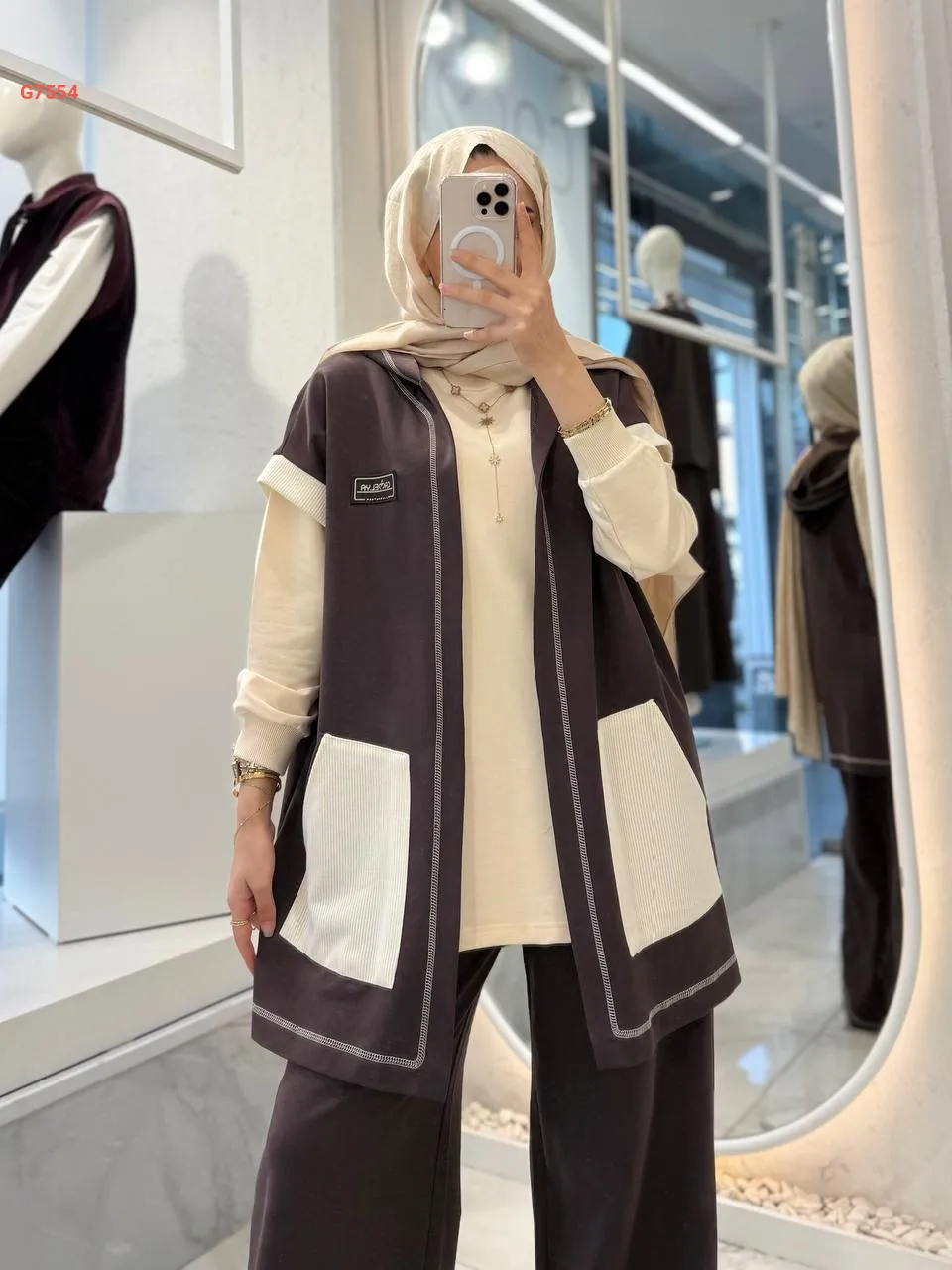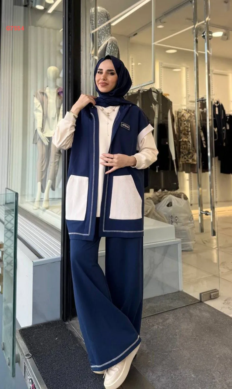طقم يلك 3 قطع جيب عريضة وطاقية