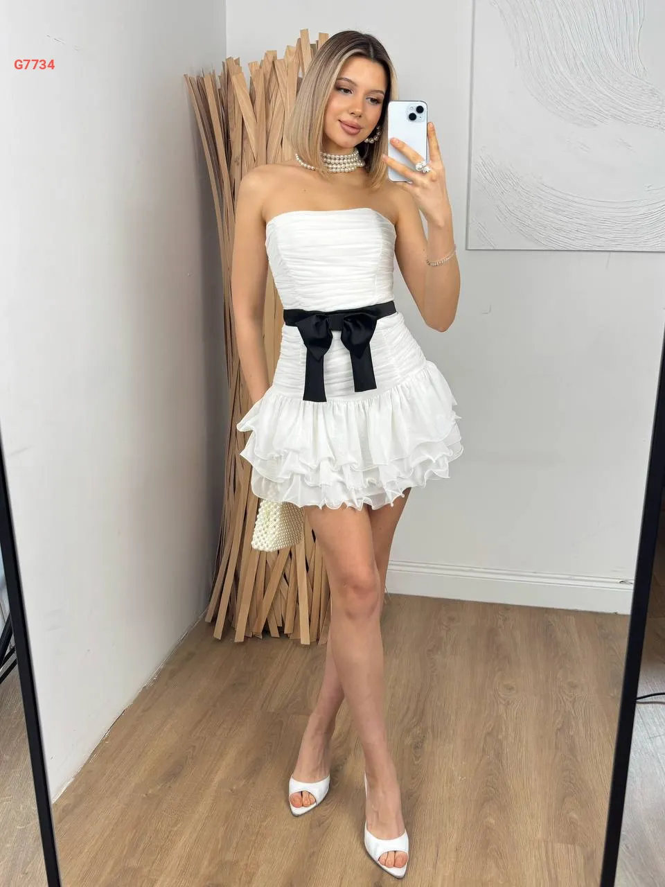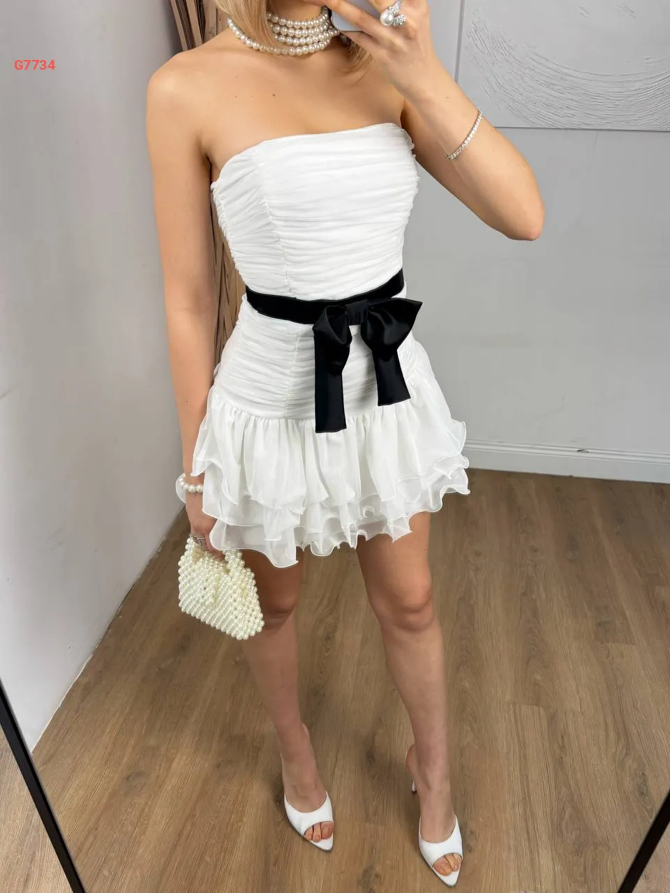 فستان قصير cut كشكش مع زنار بفيونك