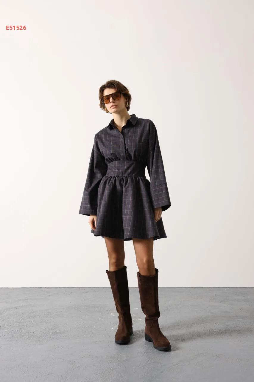 فستان قصير مخصر بتفاصيل كارو