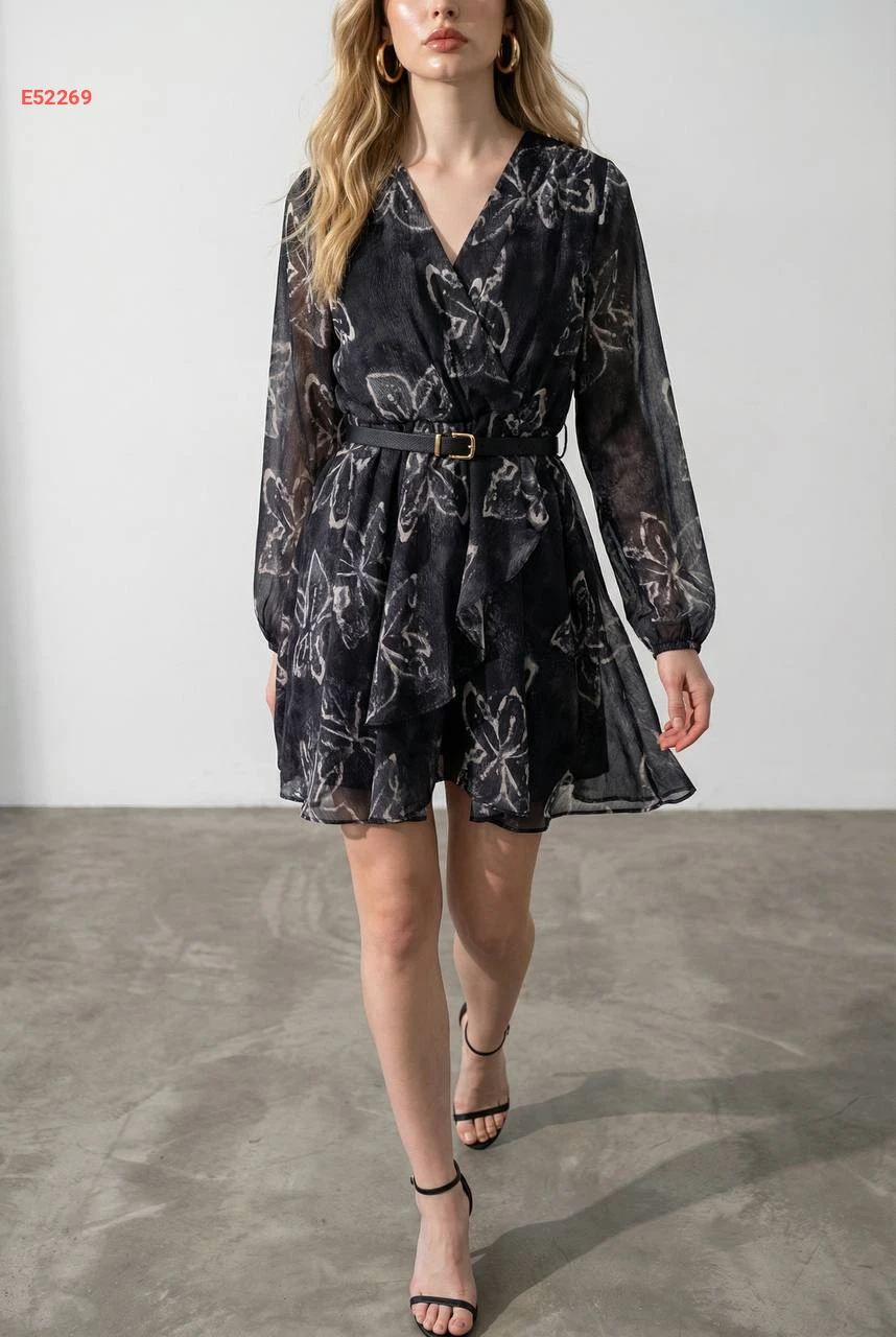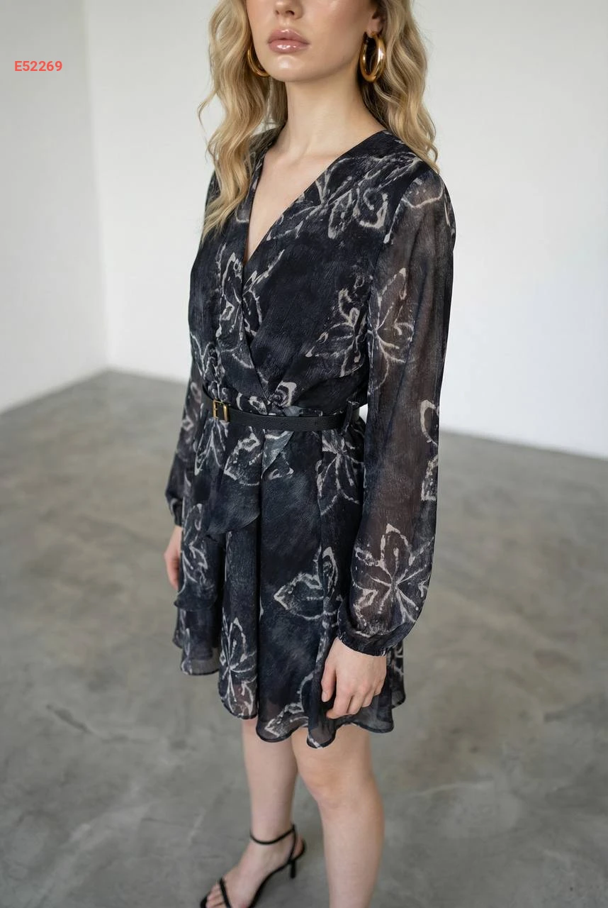 فستان قصير شيفون منقوش