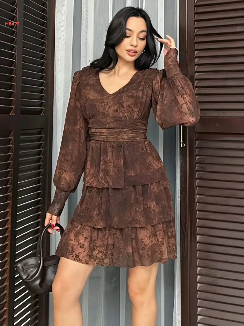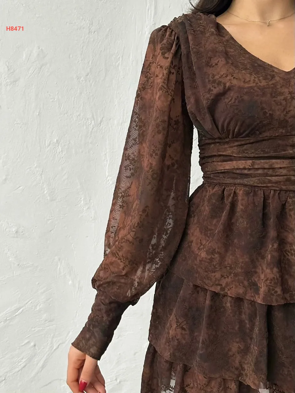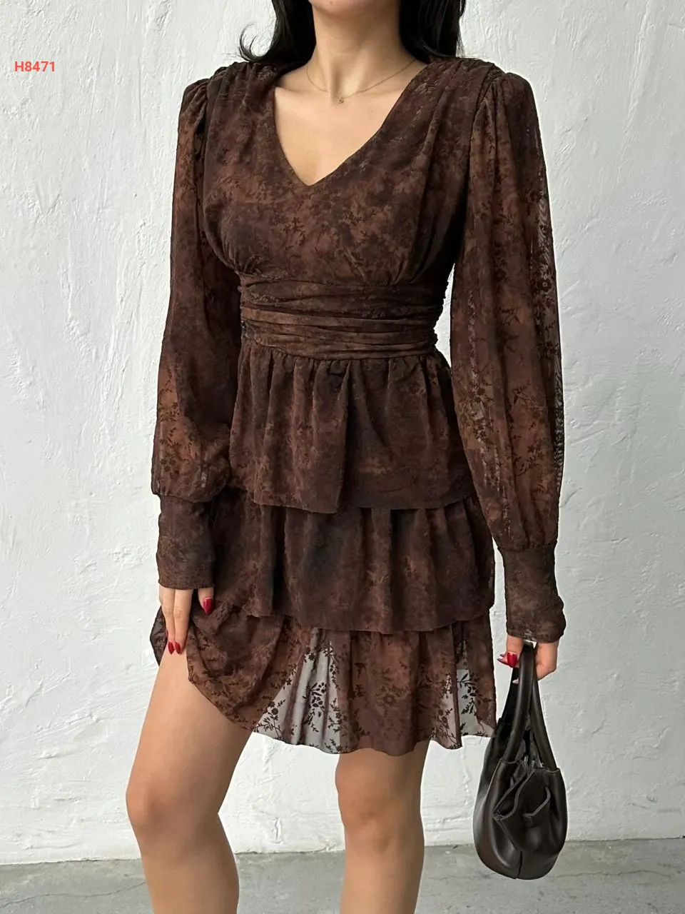 فستان قصير كشكش شفاف منقوش