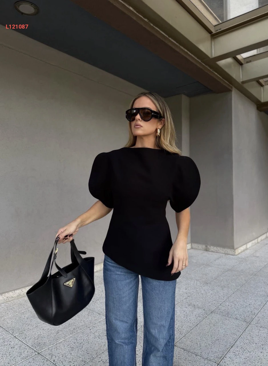 بلوزة بأكمام قصيرة مفتوحة