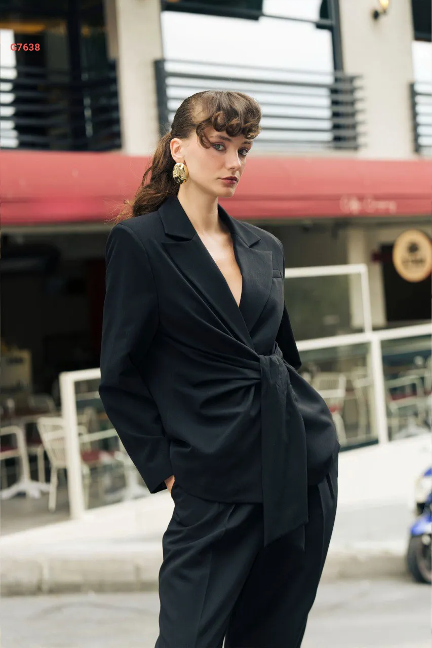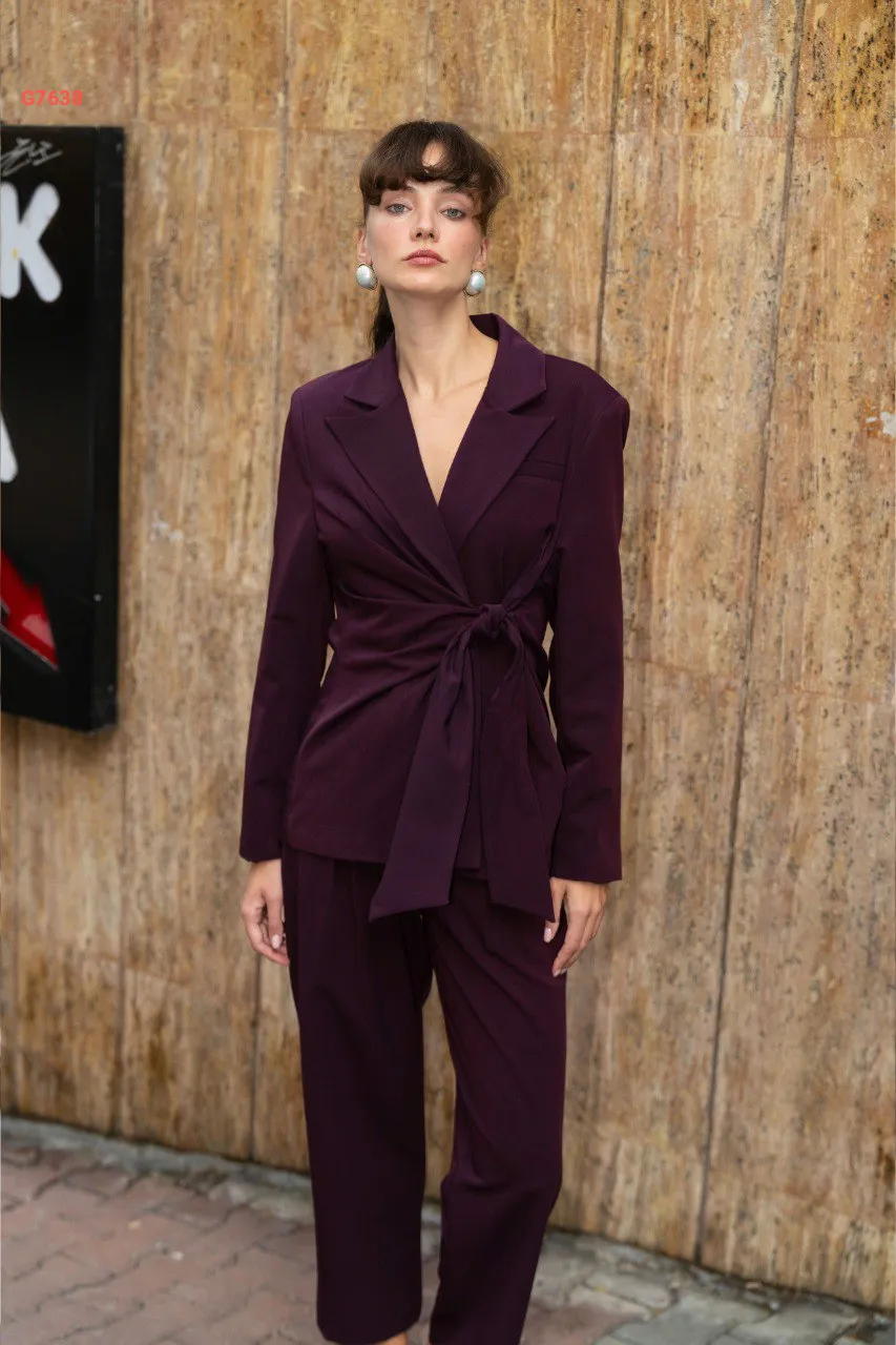 طقم بنطال وبليزر بربطة جانبية