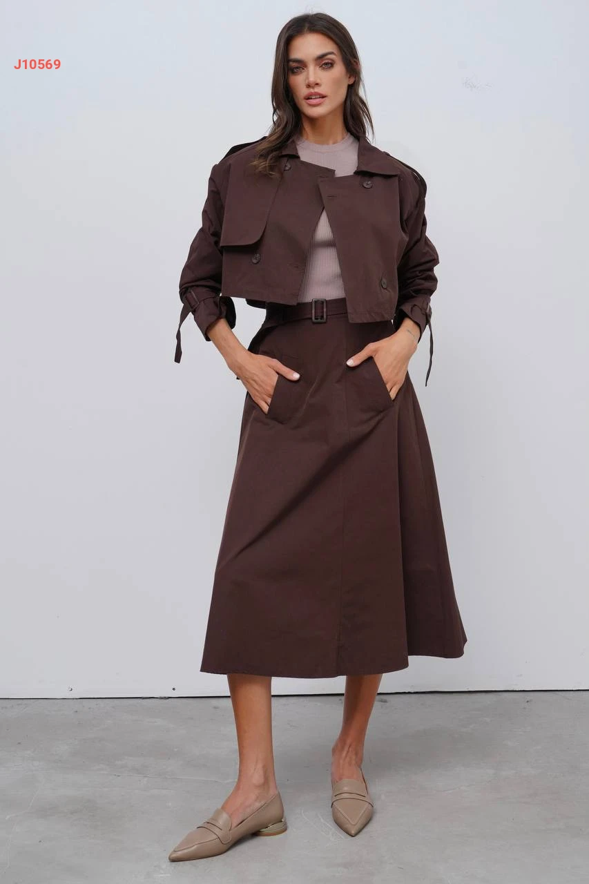 طقم تنورة بحزام مع جاكيت