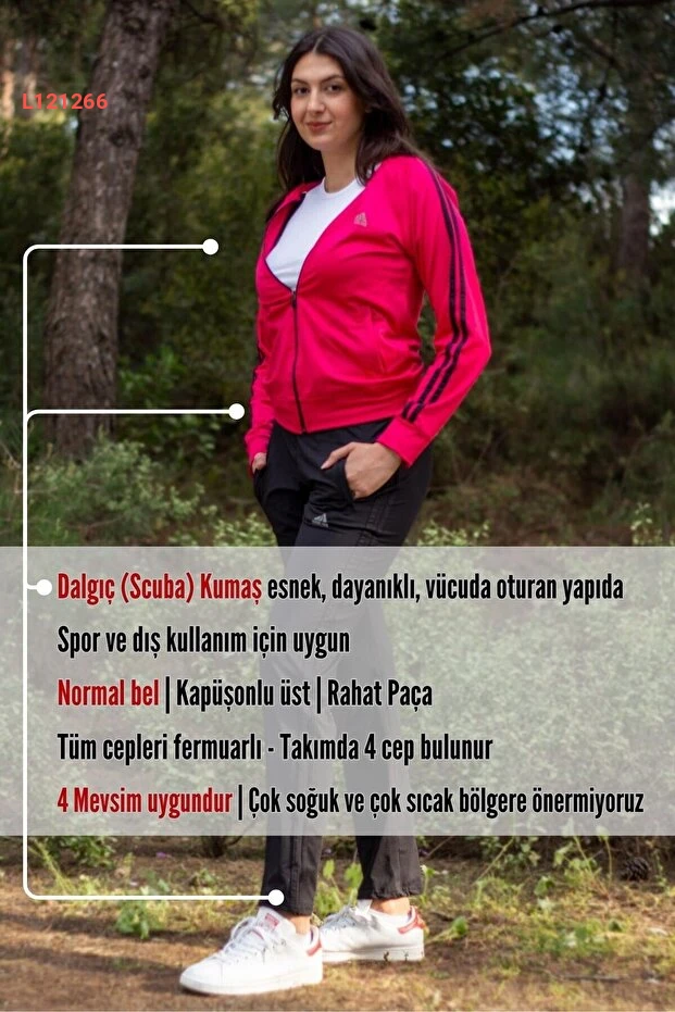 اجذب الأنظار مع طقم الرياضة الفريد Azıcık، الذي يأتي بلون فوشيا الأسود الجذاب. مصمم من قماش الغمر المتين، يتميز هذا الطقم برباط قبعة وقفل بسحاب لضمان الراحة أثناء التمارين اليومية أو الاسترخاء في المنزل، مما يجعله الاختيار المثالي للمرأة العصرية التي تبحث عن أناقة وراحة في آن واحد.