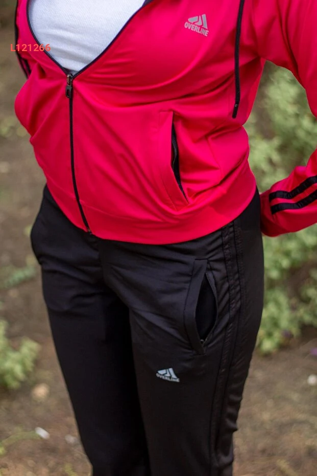 طقم رياضي نسائي برباط هوديي من قماش الغوص الفوشيا والأسود