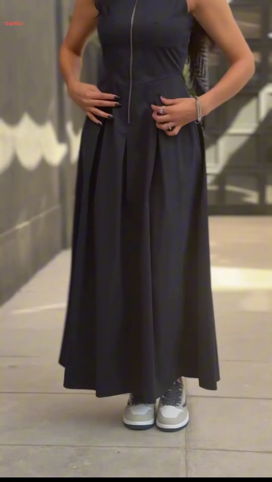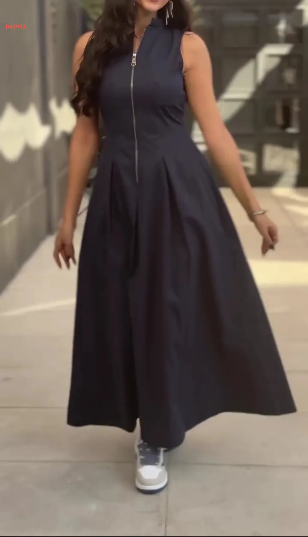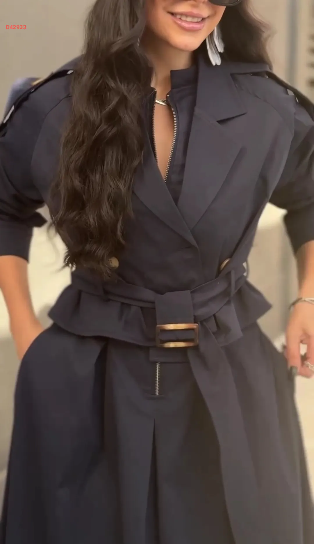 فستان سادة بنصف سحاب، بكسرات من الأمام مع جاكيت وحزام