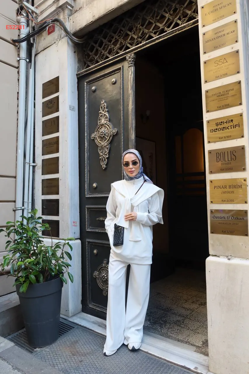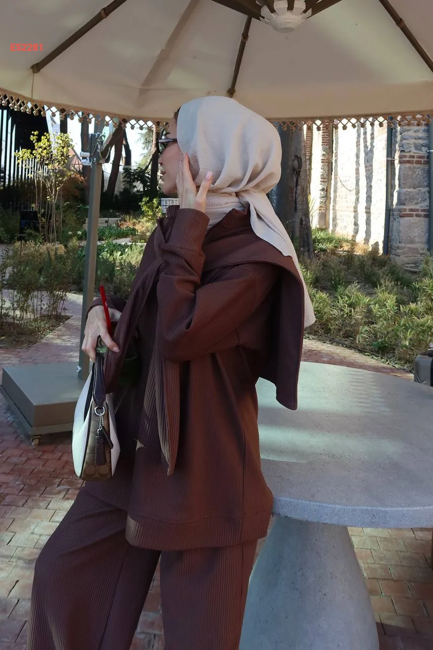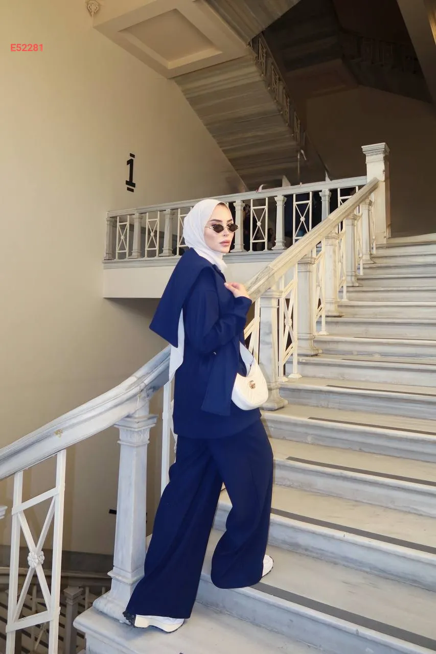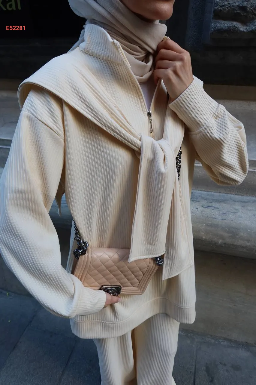 طقم بنطال سبور وكتزة مع فولار