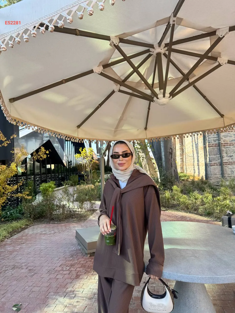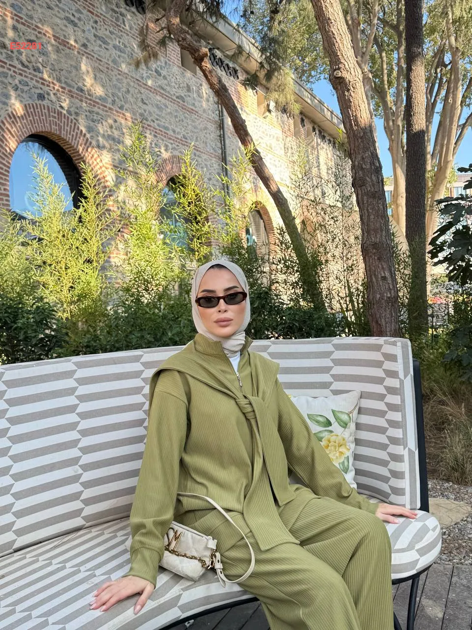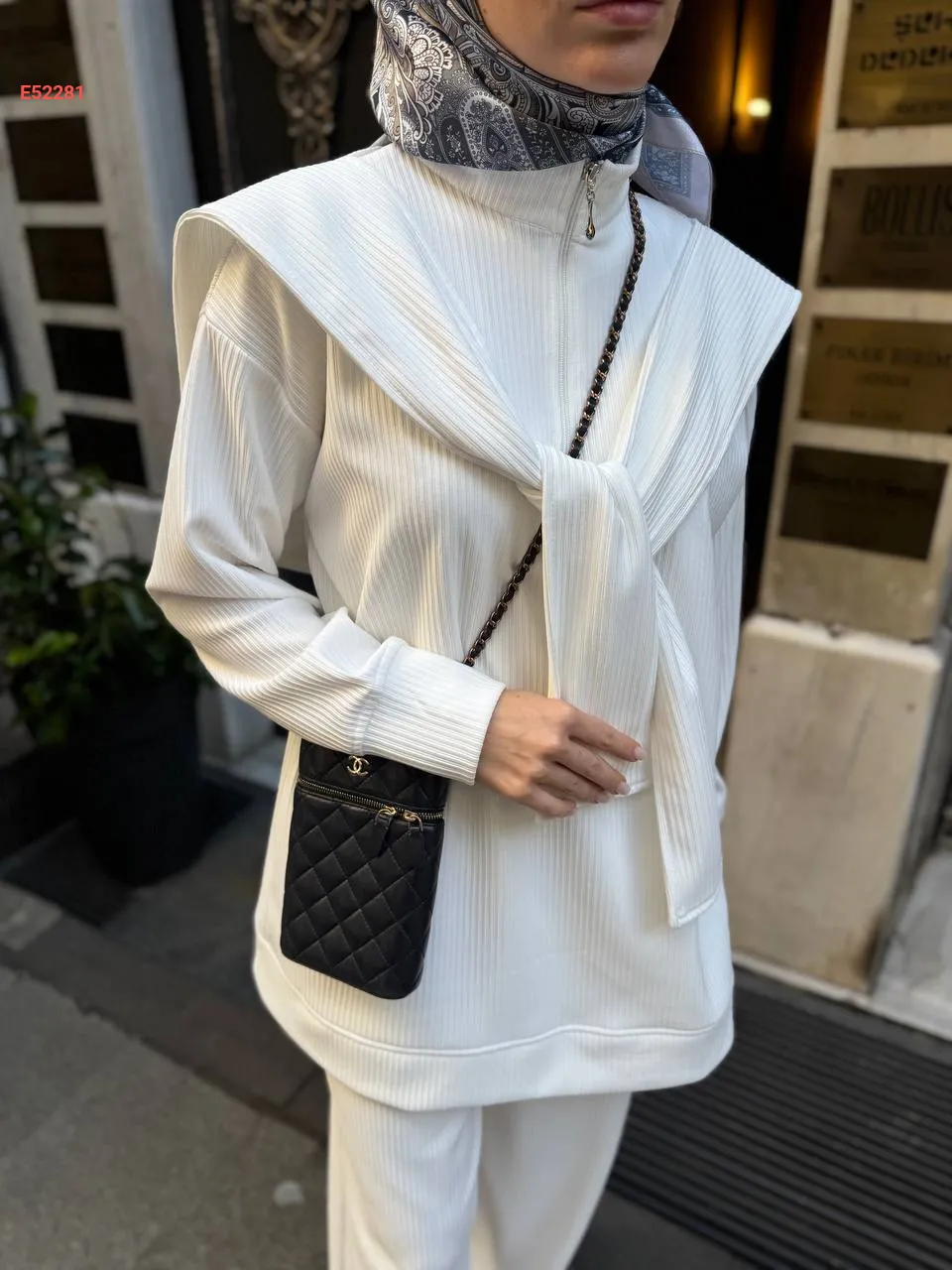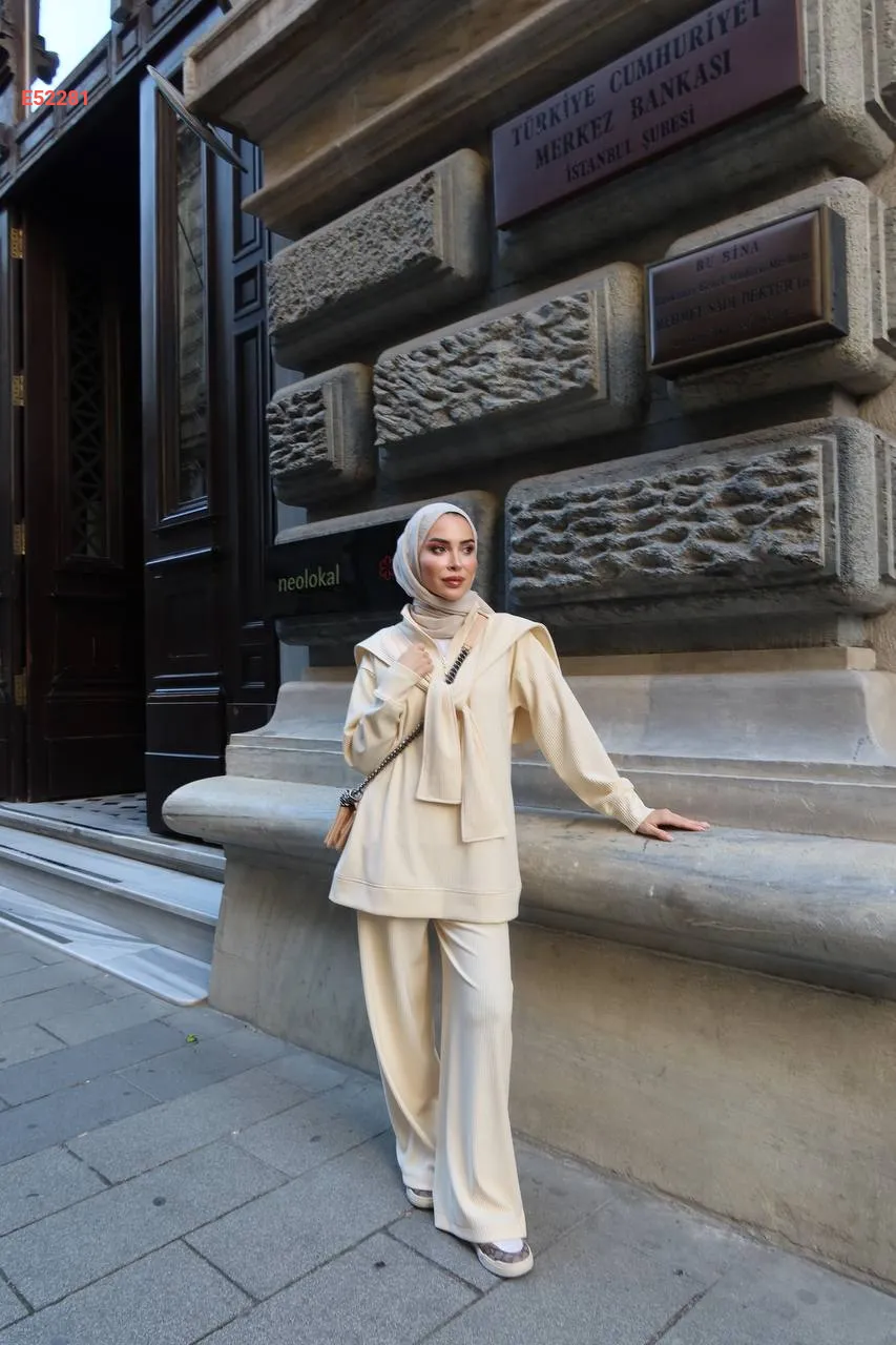 طقم بنطال سبور وكتزة مع فولار