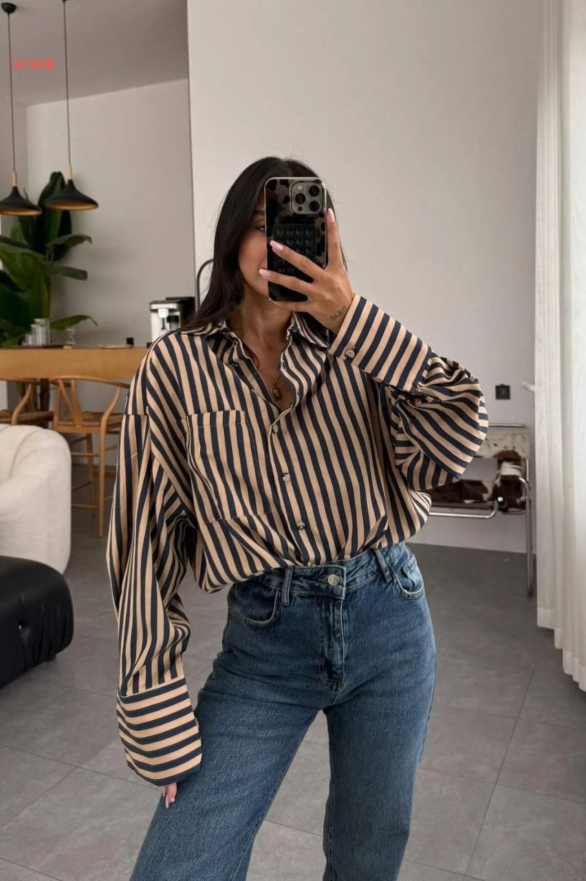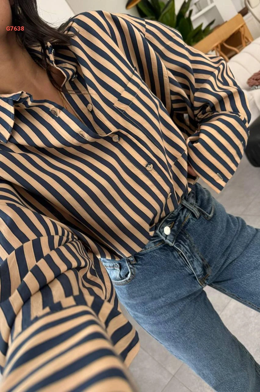 قميص مقلم بجيب أمامي