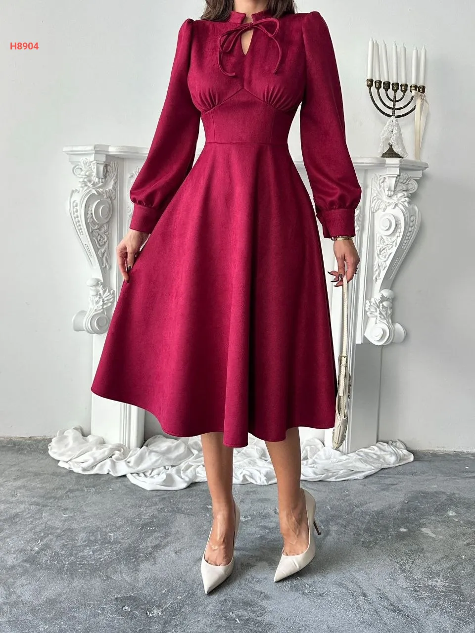 فستان شامواه بطيات وربطة عالقبة