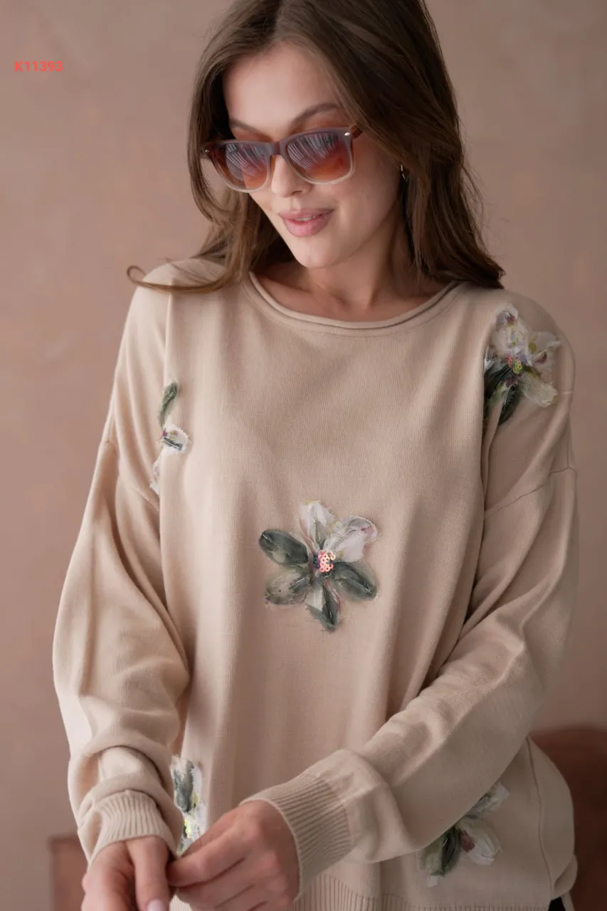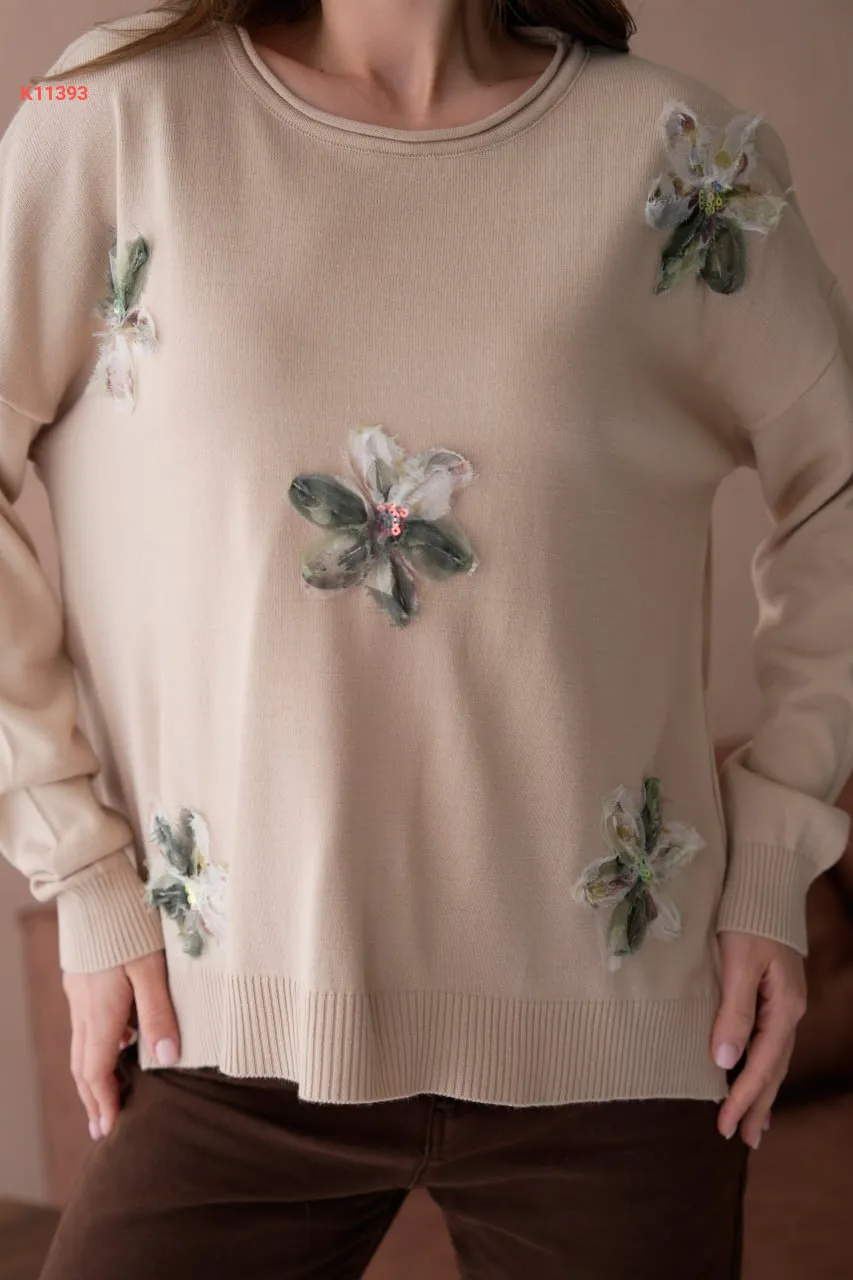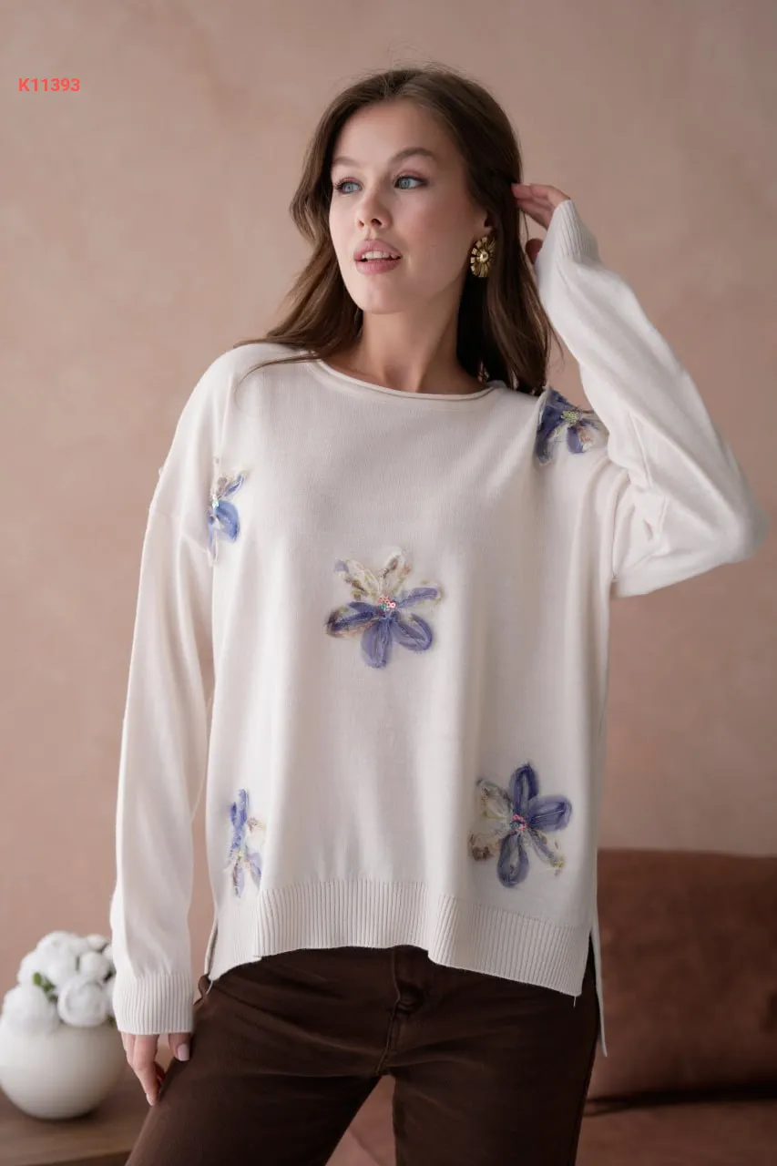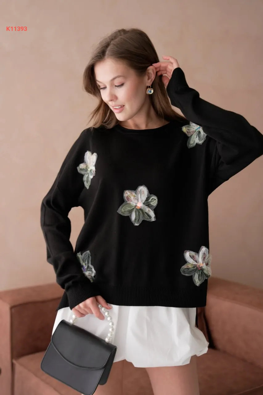 كنزة تريكو مزينة ورد