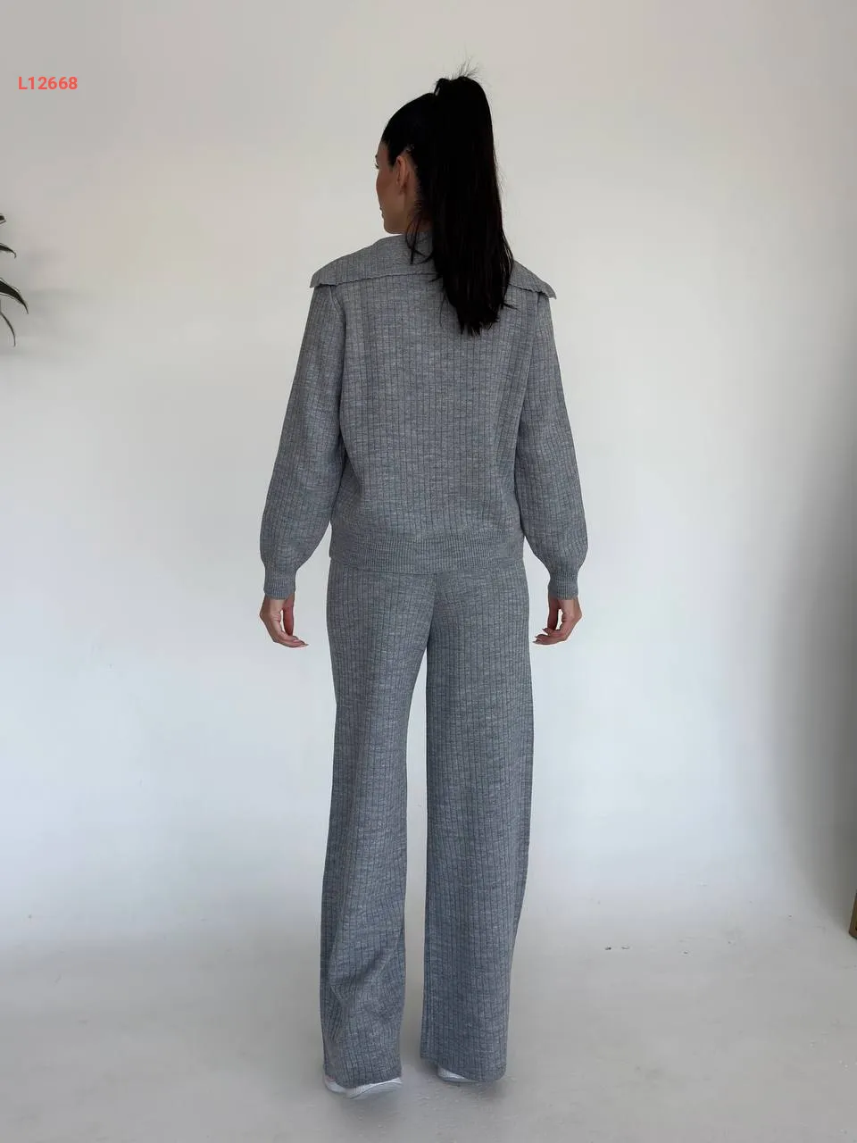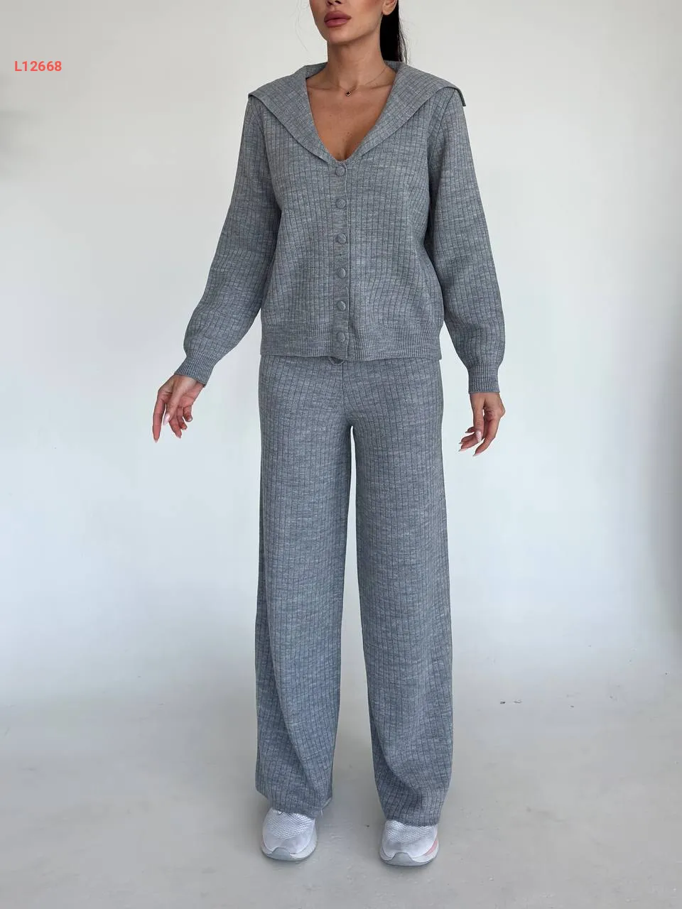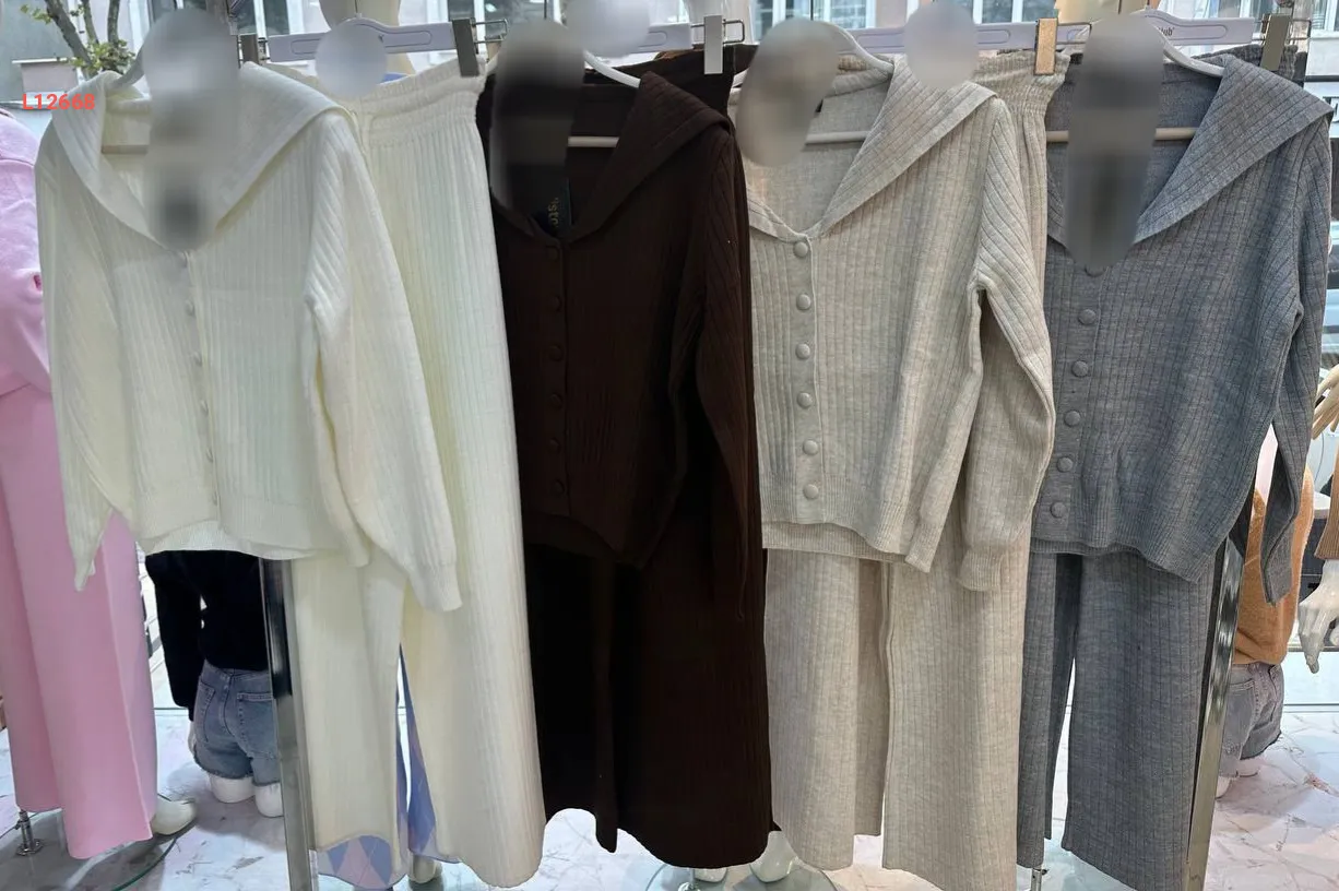 طقم بنطال تريكو وجاكيت بأزرار