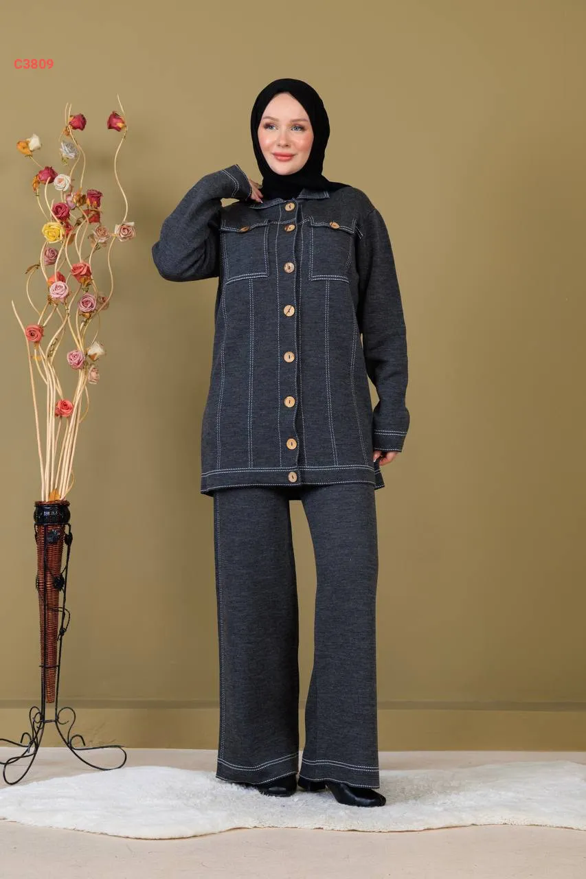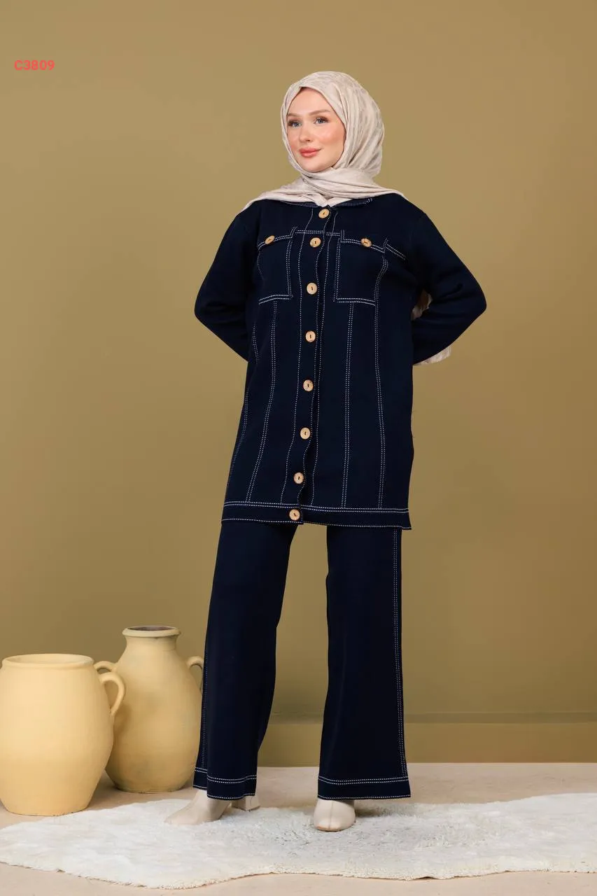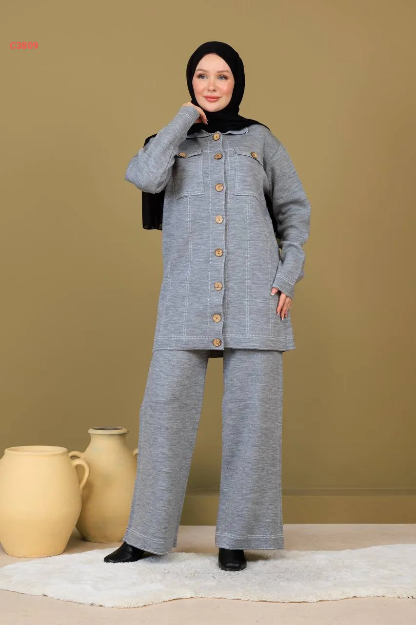 طقم بنطال تريكو وجاكيت بجيوب