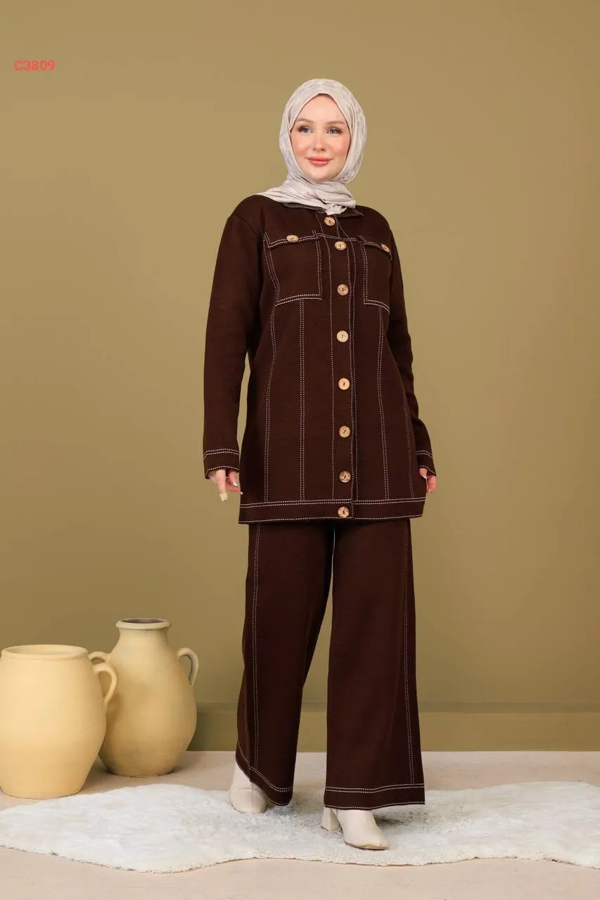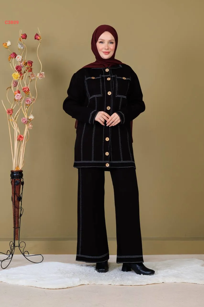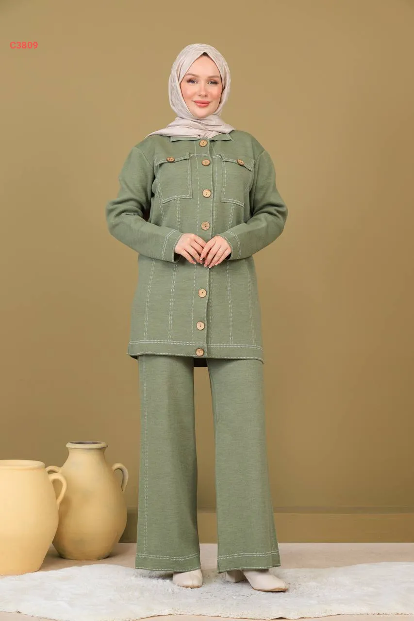طقم بنطال تريكو وجاكيت بجيوب