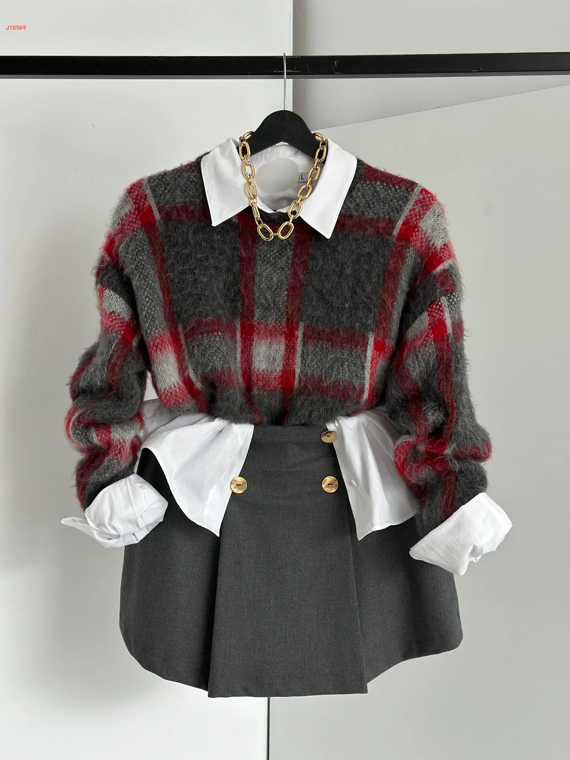 كنزة تريكو بياقة مادونا مع إ...