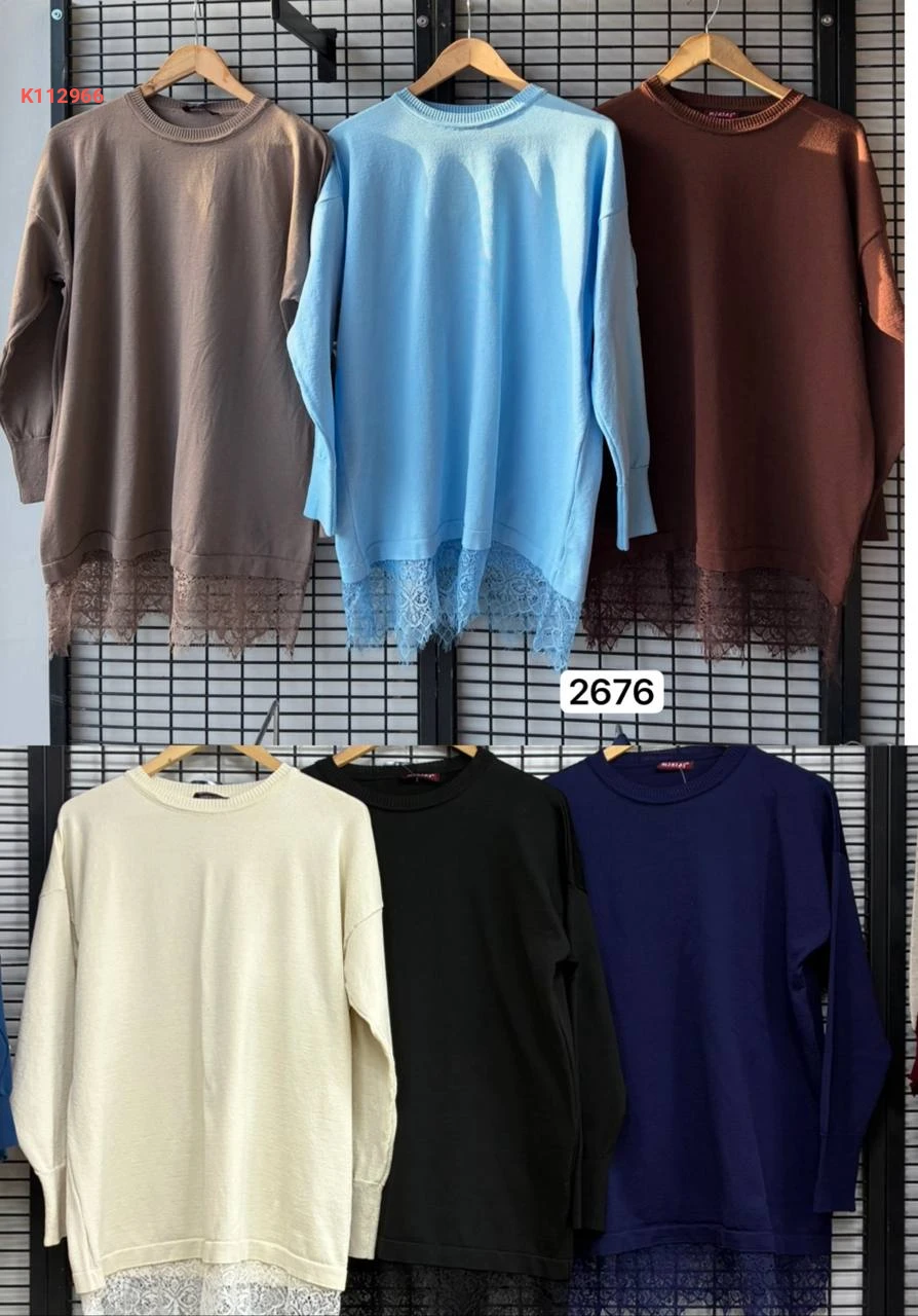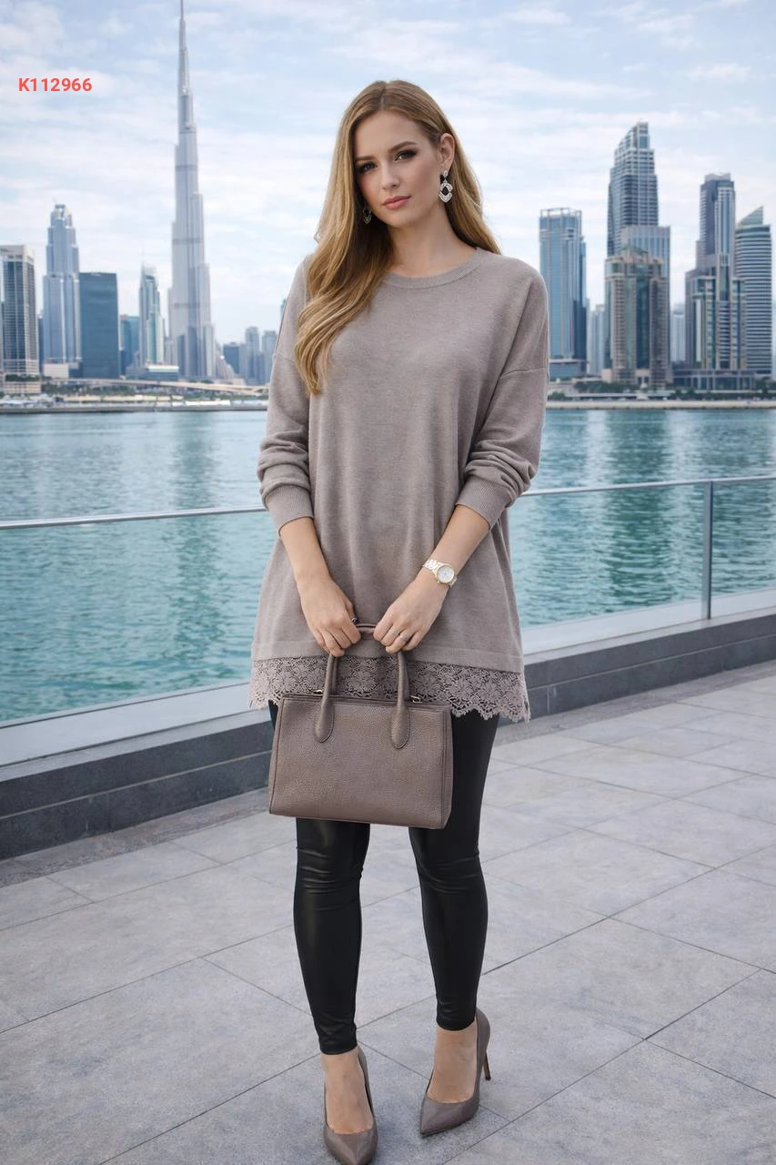 كنزة بقبة دائرية مع دانتيل