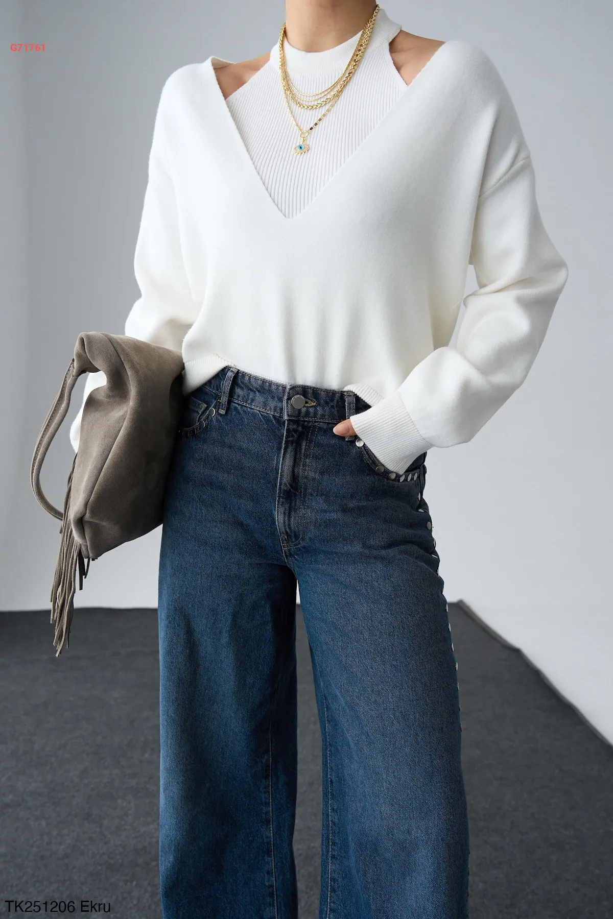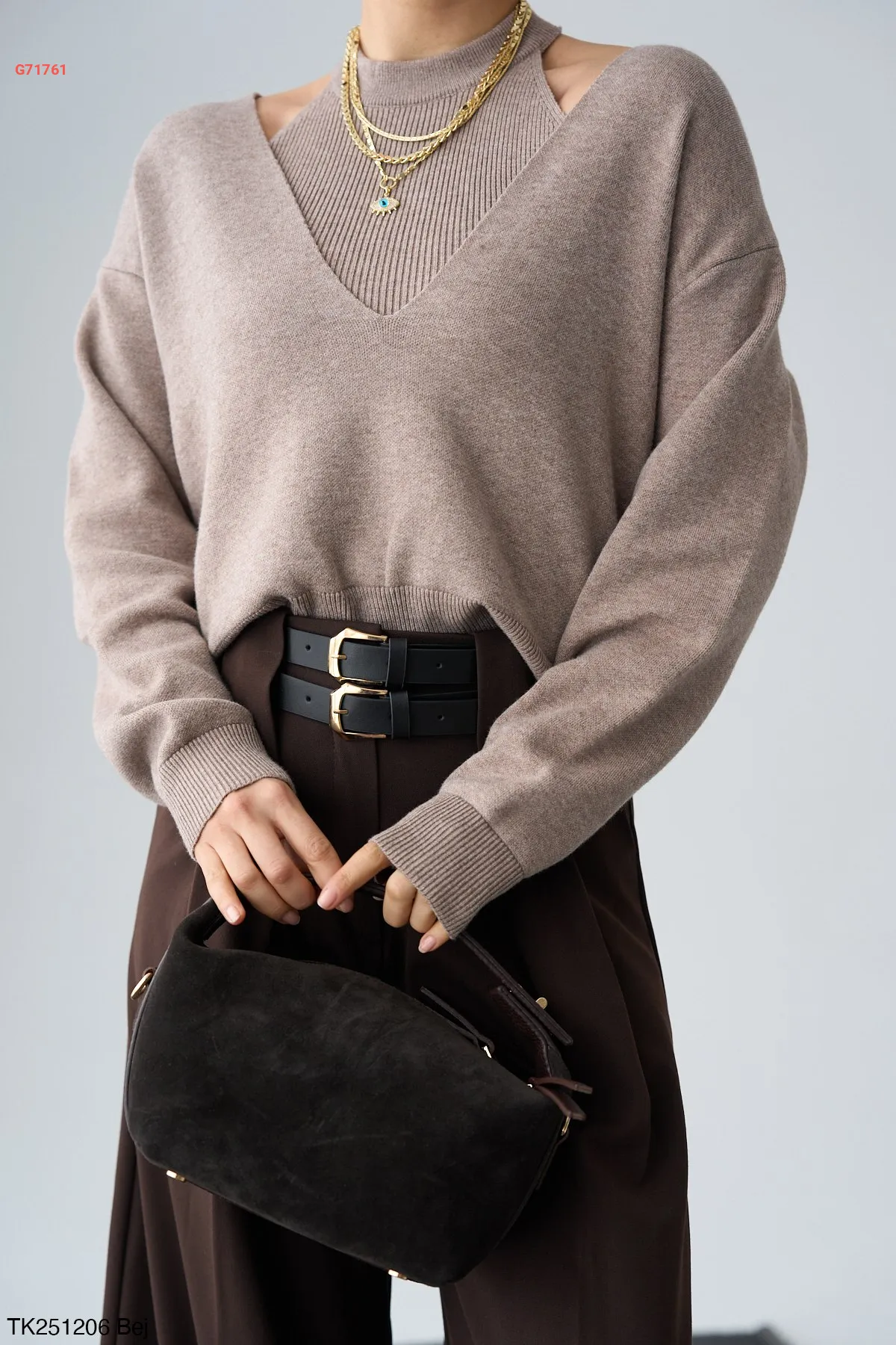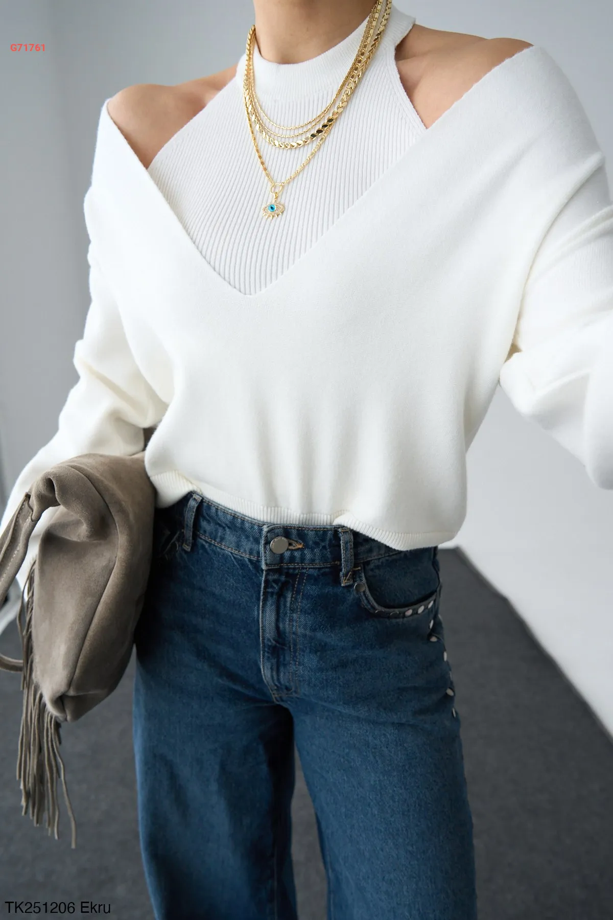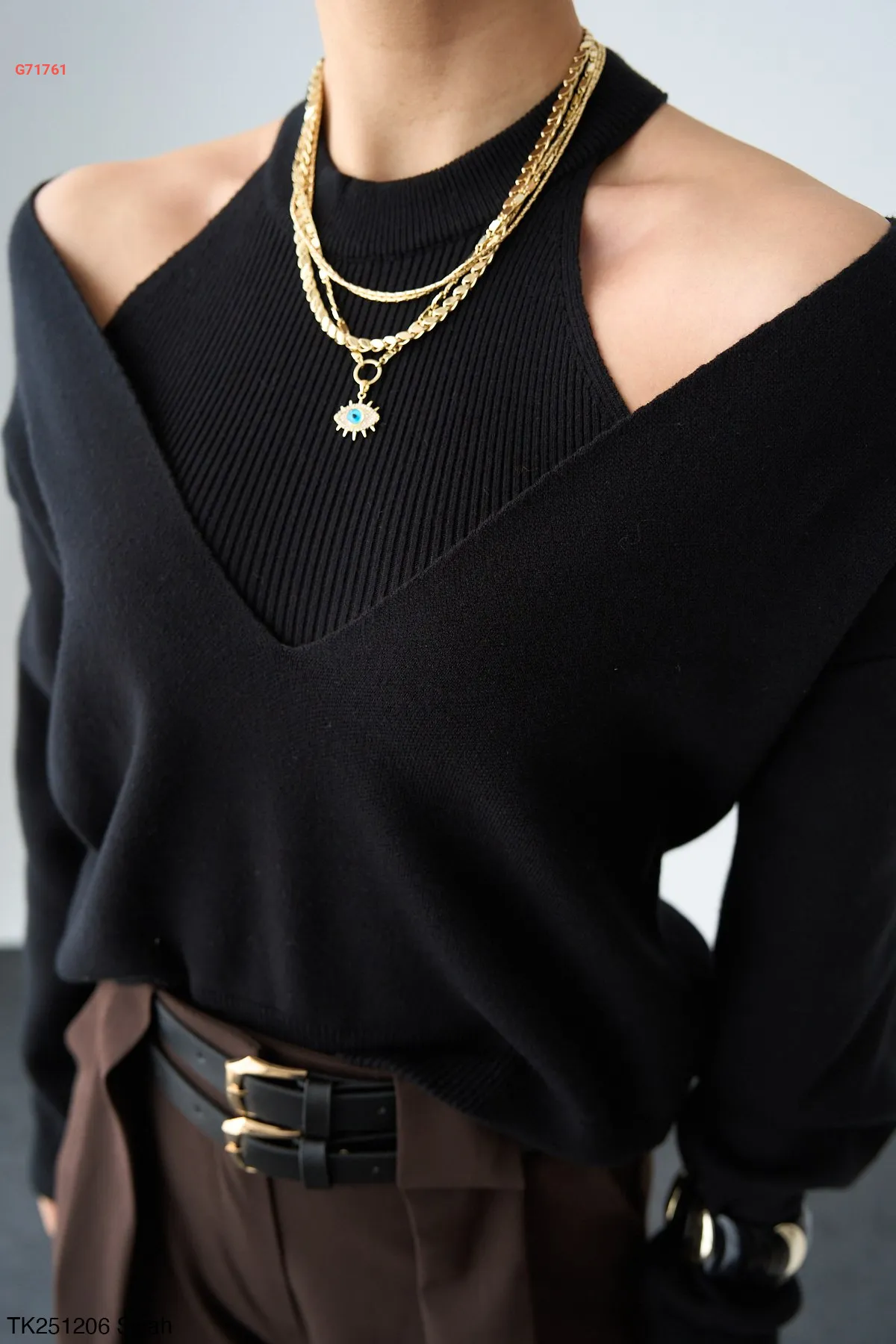كنزة تريكو بفتحات عالكتف