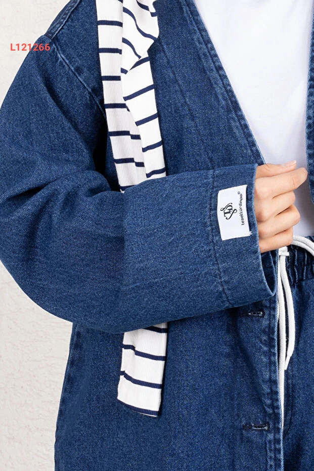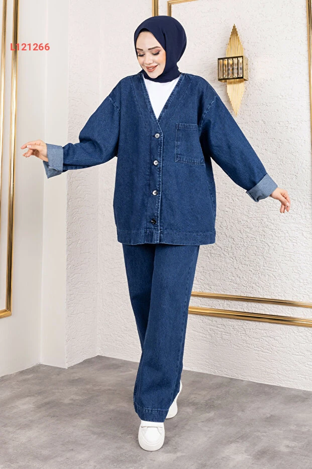 استمتعي بأناقة عصر جديد مع طقم "تسيتور دنيا فيرا" من دنيم، بلون كحلي جذاب يناسب جميع الأوقات. يجمع هذا الطقم بين الراحة العصرية والتصميم الأنيق، مع تفاصيل دقيقة تعكس ذوقك الرفيع، مما يجعله الخيار المثالي لنمط حياة نشط وديناميكي. ارتدي الثقة مع كل خطوة!