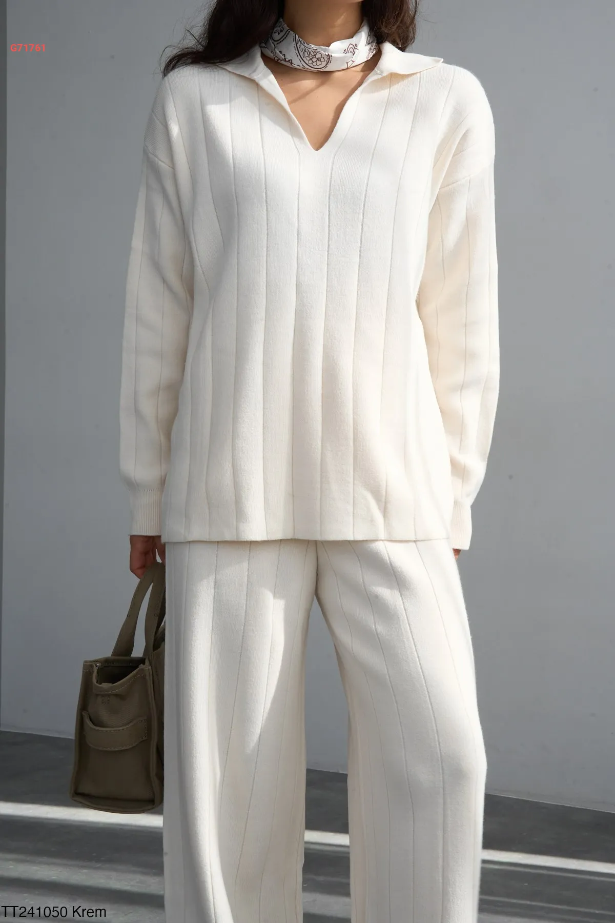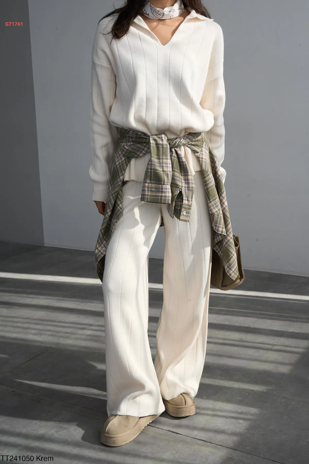 طقم بنطال تريكو وكنزة قبة v