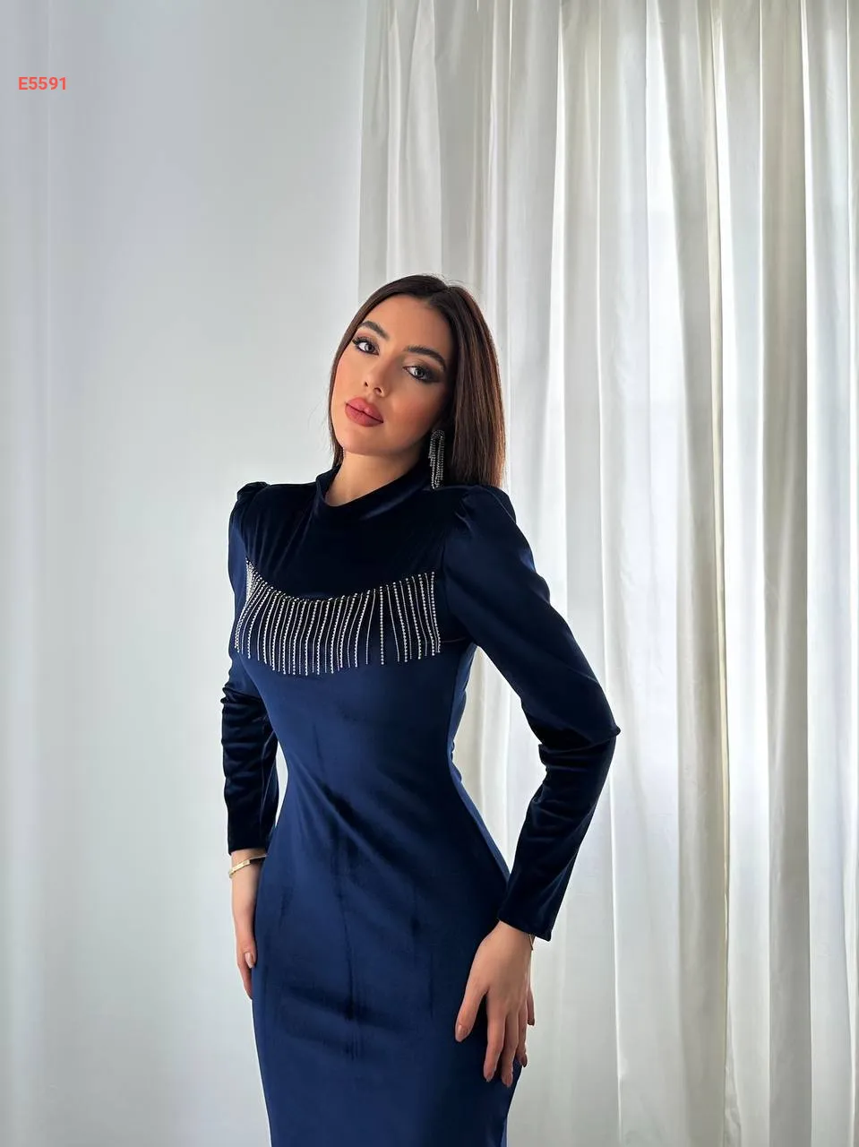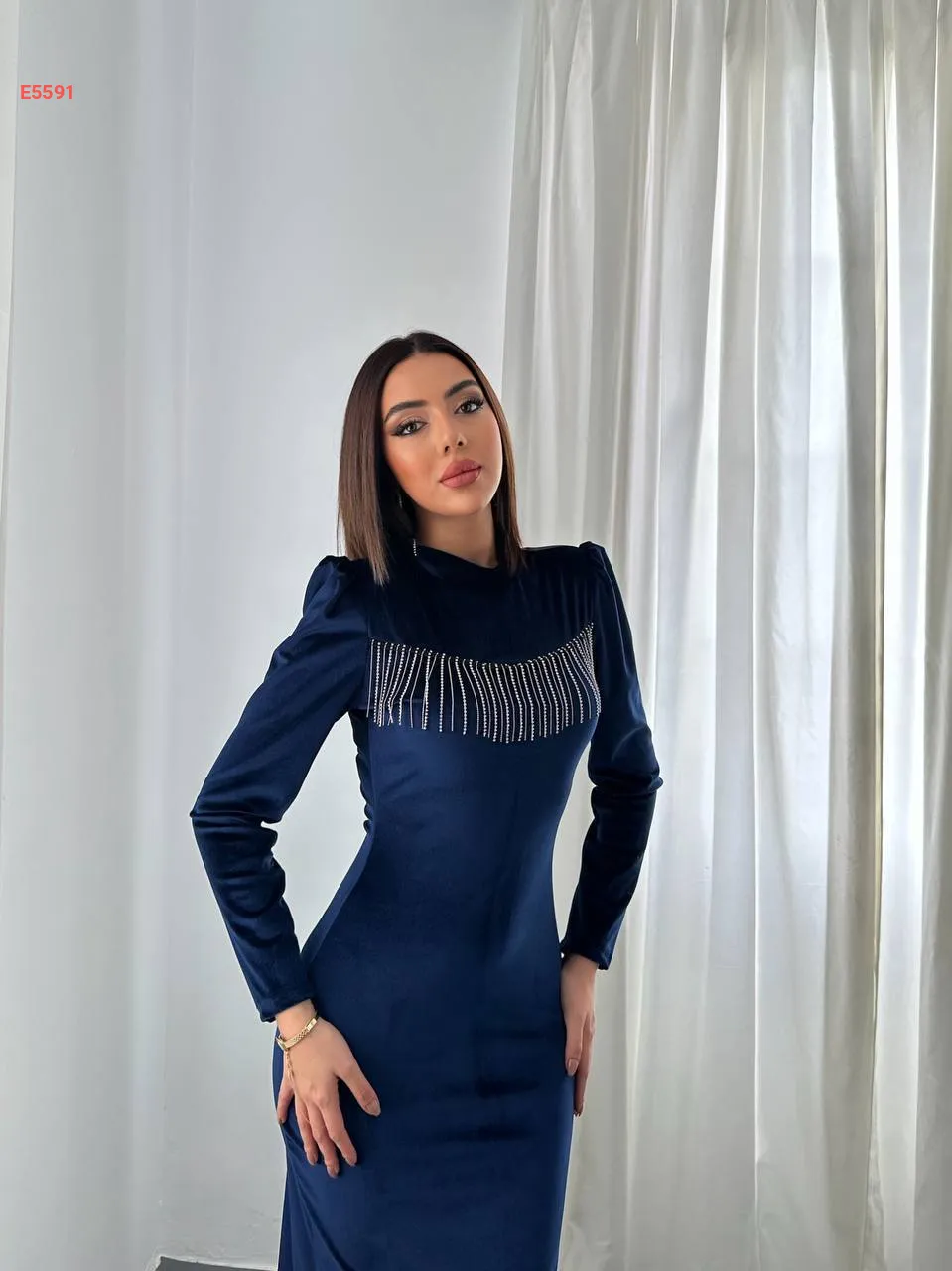 فستان مخمل مجسم بسلاسل