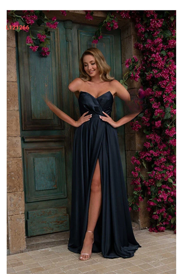 استمتعي بإطلالة ساحرة مع فستان Tradinyom الأزرق الداكن المصنوع من الساتان الفاخر، الذي يتميز بتصميمه الفريد بدون أكمام وشق جانبي جذاب. مثالي للمناسبات الخاصة، يجمع بين الأناقة والراحة ليمنحك إطلالة رائعة تبرز أنوثتك وتجعلك محط الأنظار في كل مناسبة.