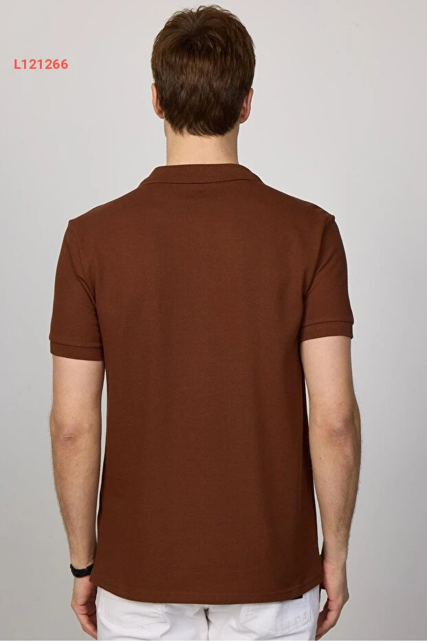 تيشيرت بولو رجالي برايد رفيع من القطن بخامة ناعمة ومتجددة الهواء - بني