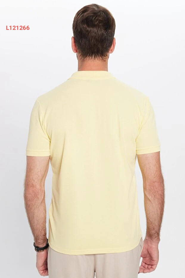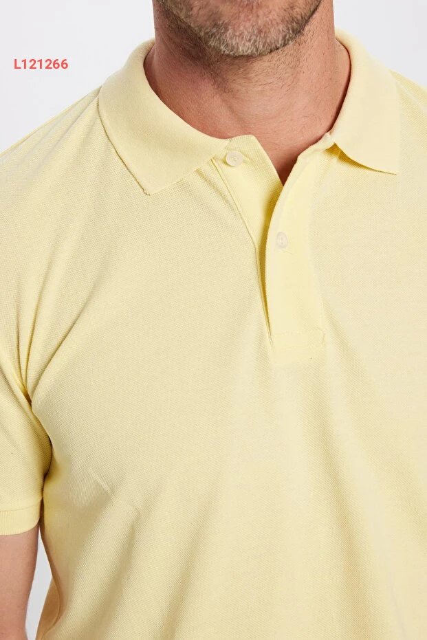 تيشيرت بولو أصفر للرجال بقصة ضيقة من قطن ناعم ومريح ذو نسيج قابل للتنفس