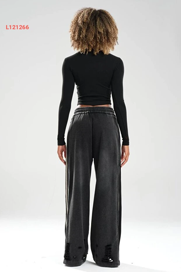 بنطال تصميم جانبي بسحّاب وتفاصيل شرائط للسيدات مع تأثير غسيل