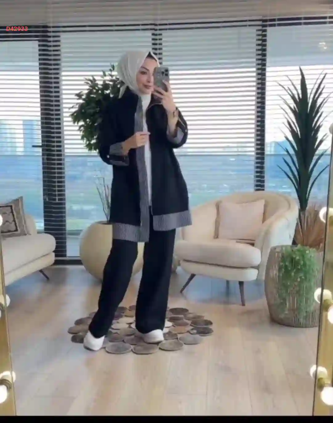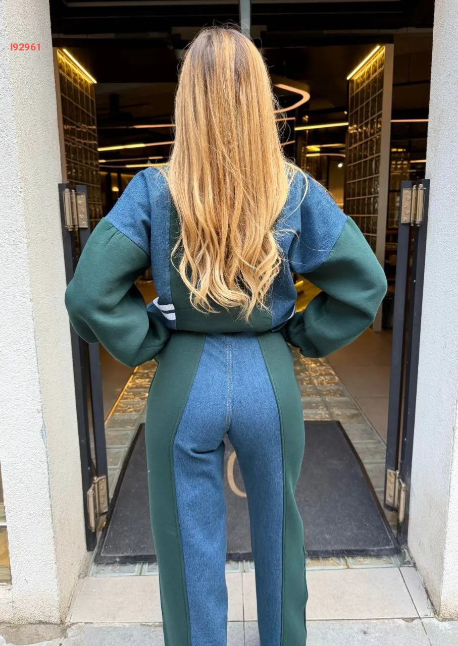 بيجامة قطعتين خطوط جينز عريضة ، قبة مدورة