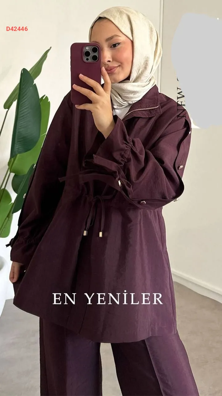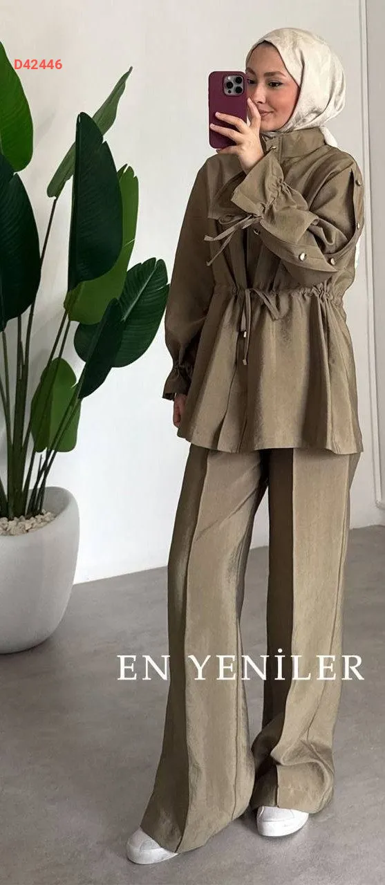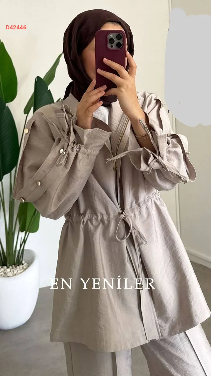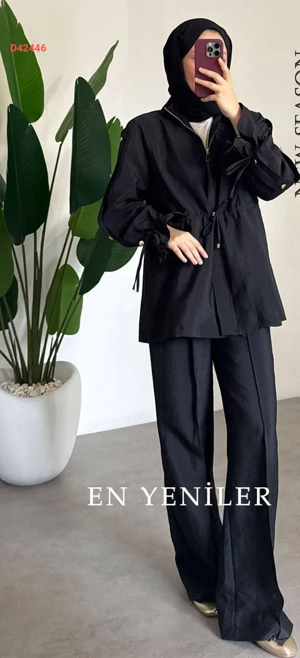 طقم بنطال قطعتين، بسحاب، مع زمة عند الخصر،