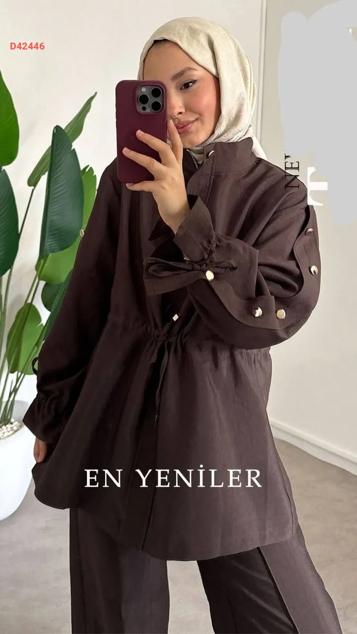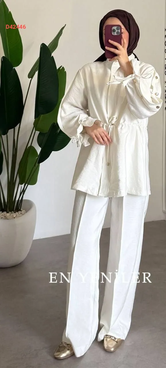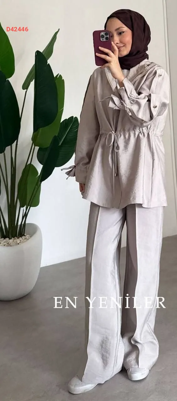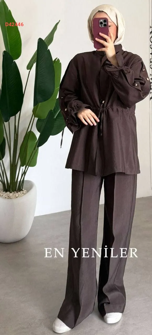 طقم بنطال قطعتين، بسحاب، مع زمة عند الخصر،