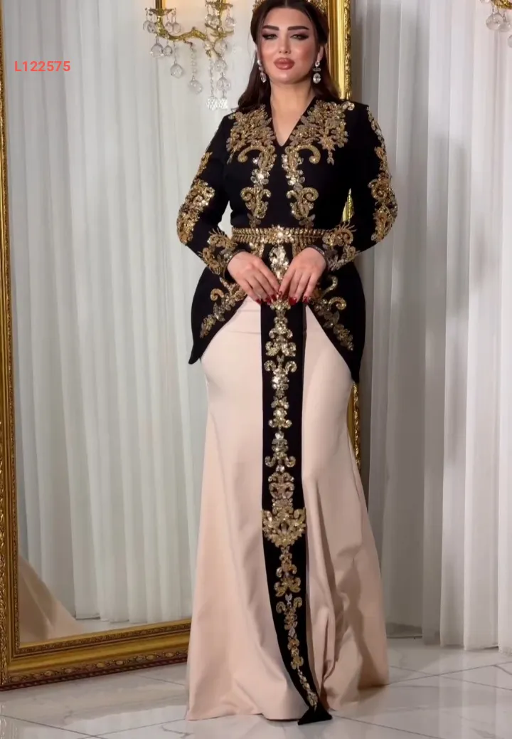 فستان سهرة لونين بتفاصيل تطريز أنيقة