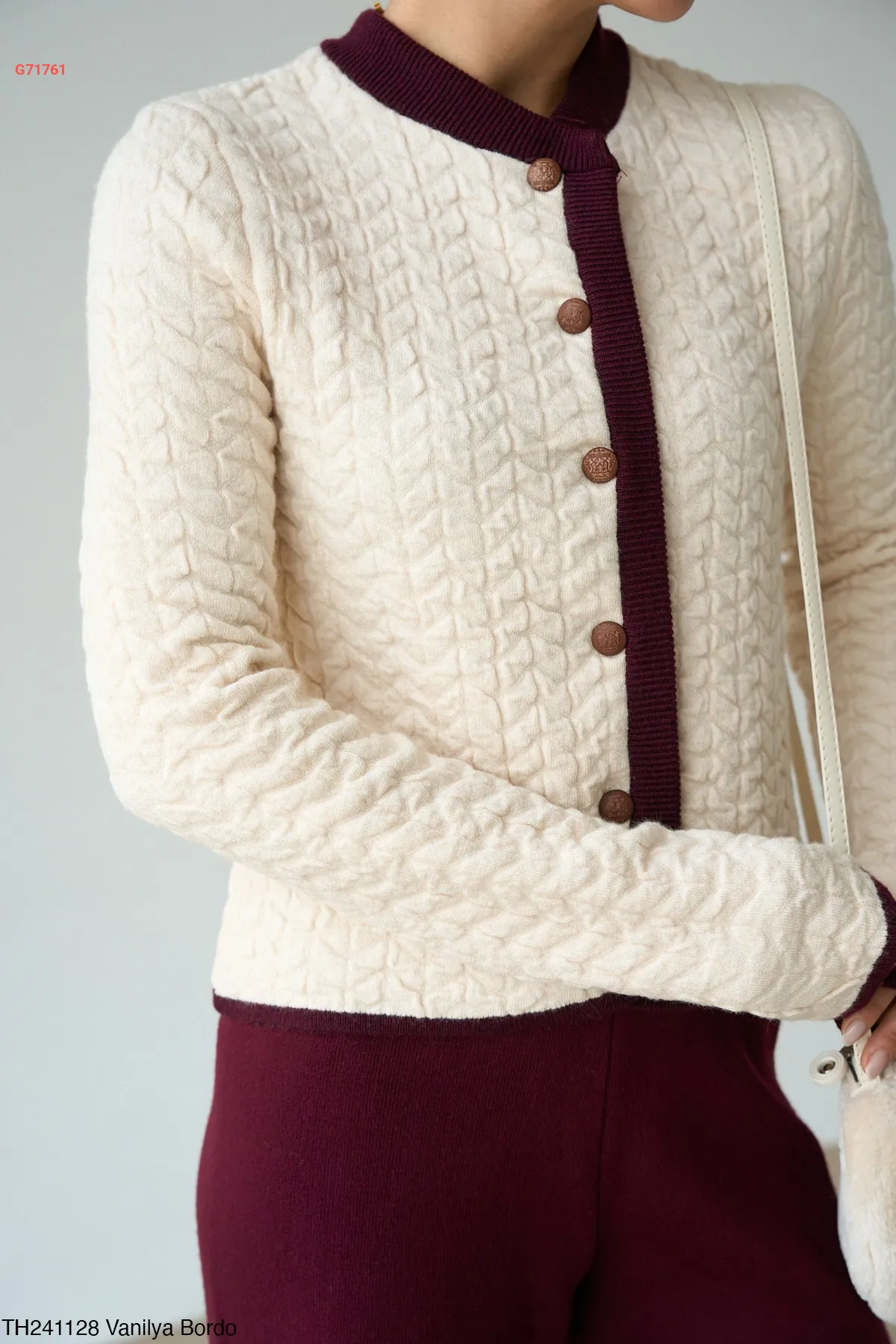 طقم بنطال تريكو وجاكيت قبة v