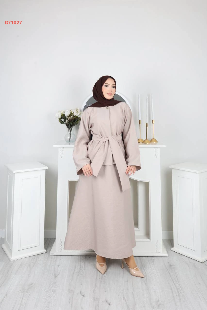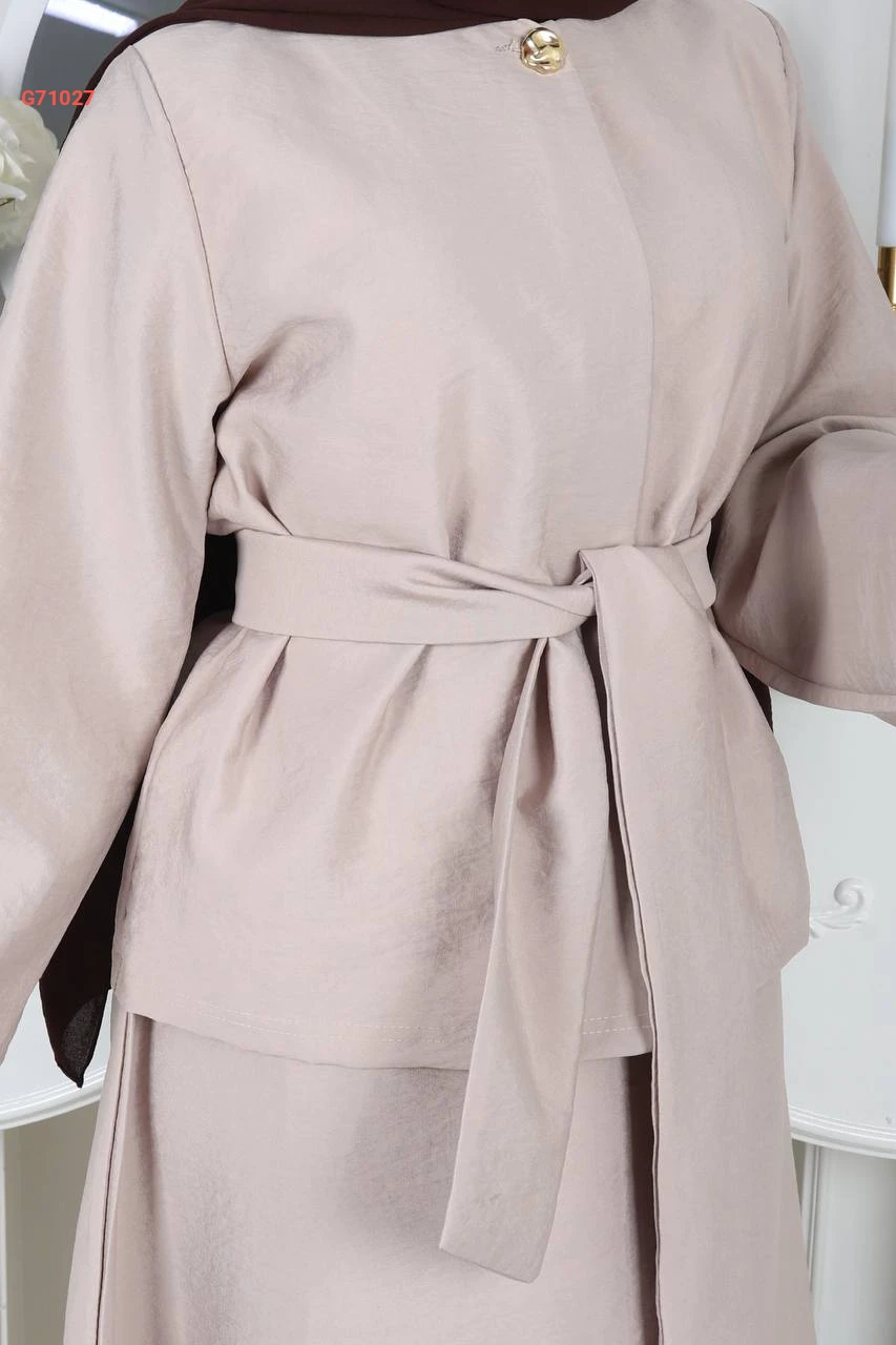 طقم تنورة زارا كريب وبلوزة بزنار