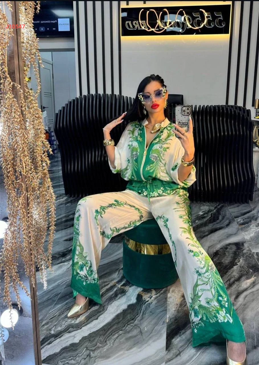 طقم بنطال زارا منقوش مع قميص