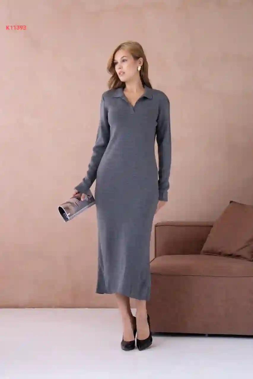 فستان تريكو طويل قبة بولو